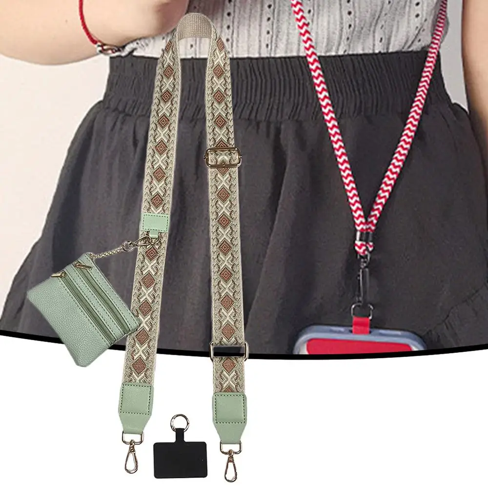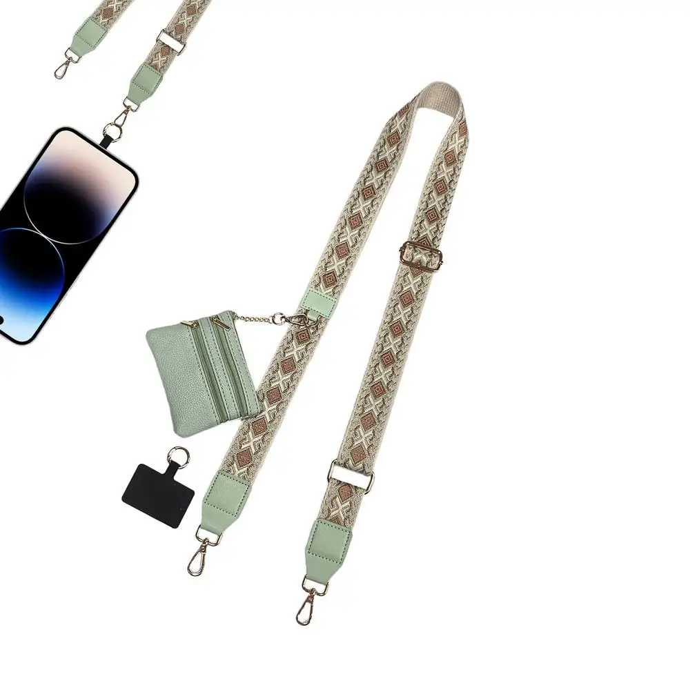 Phone Strap With Zippered Pouch Universal Adjustable Crossbody Cell Phone Lanyard Hanging Ornaments Anti-Lost Lanyards For Women