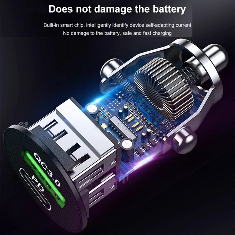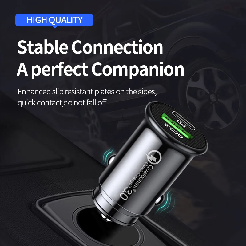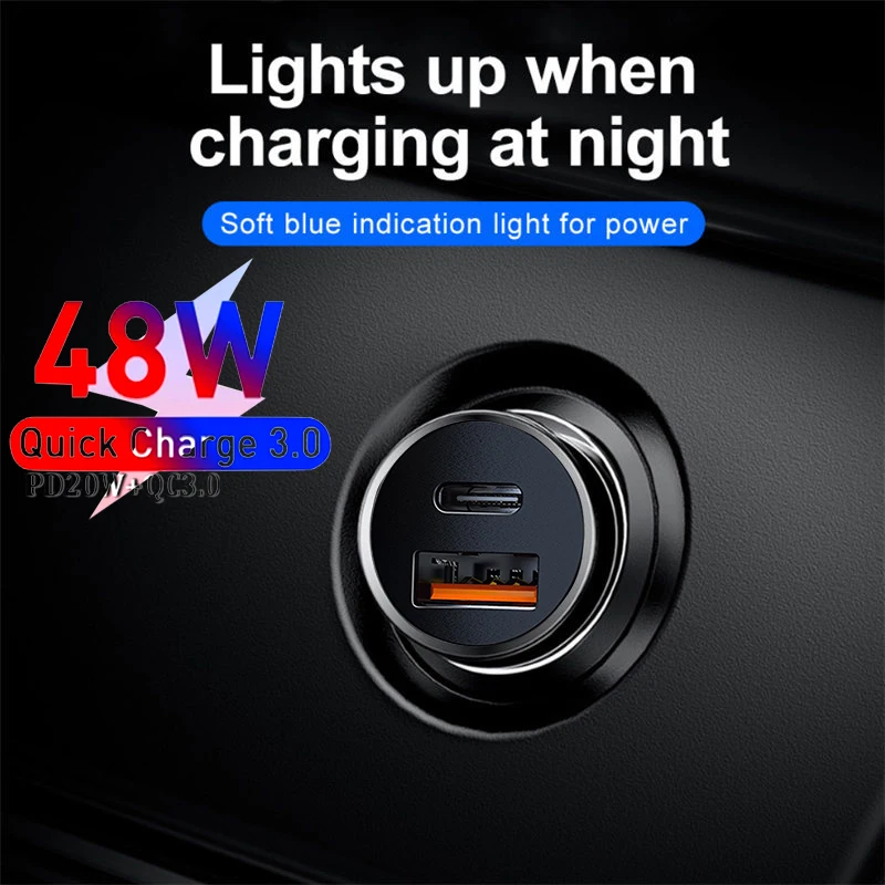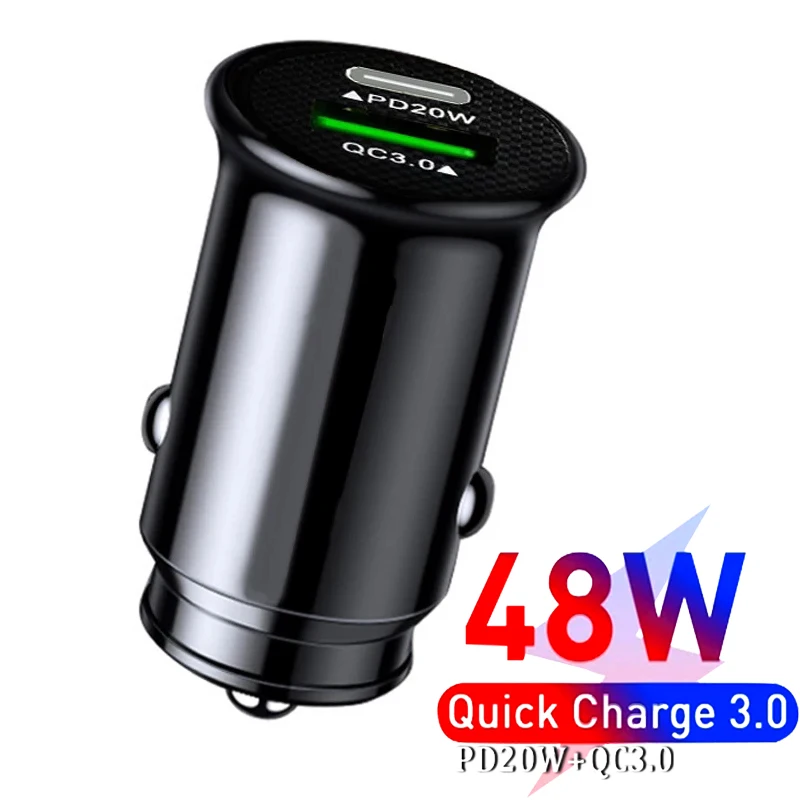 QC3.0 Car Charger Fast Charging Mini Car Lighter PD 20W USB Type C Charger For iPhone 13 12 Xiaomi 12 11 POCO M4 M3 Car Charger sinsa