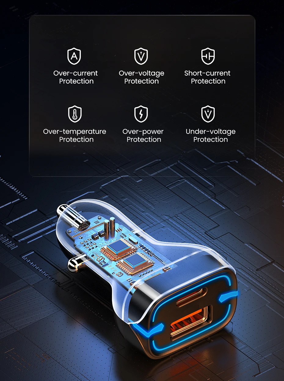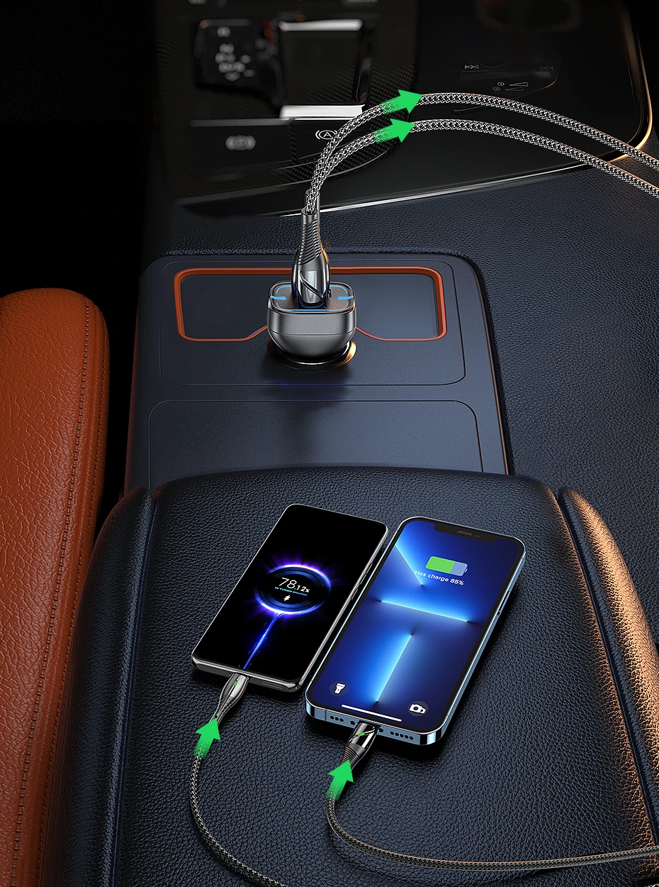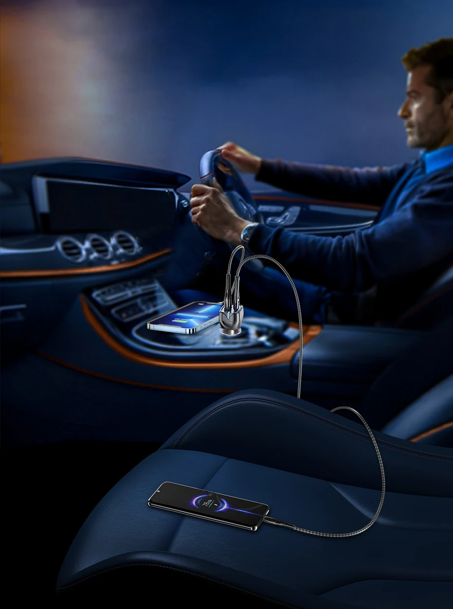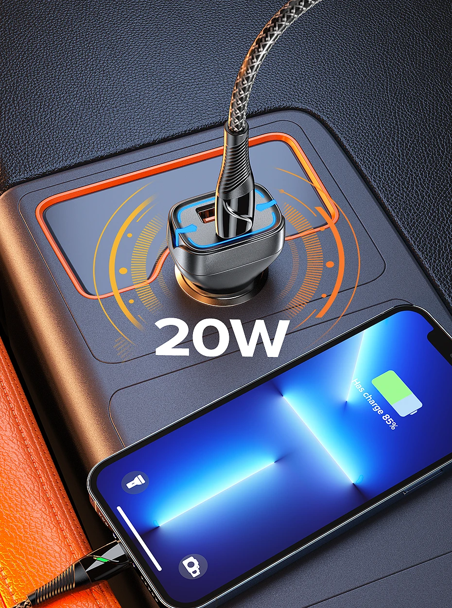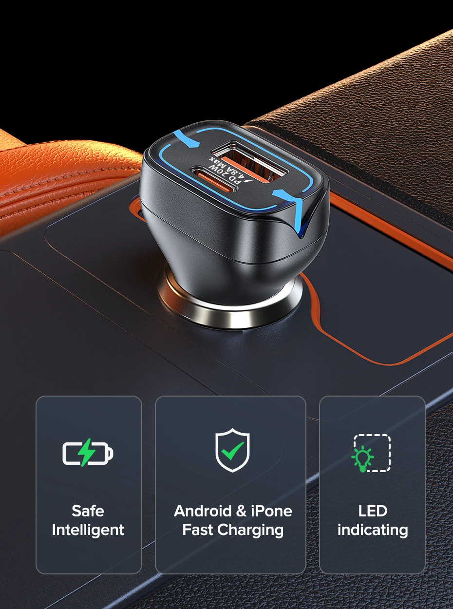 - Type 1: USB A(22.5W)+USB C(20W) Car Charger
