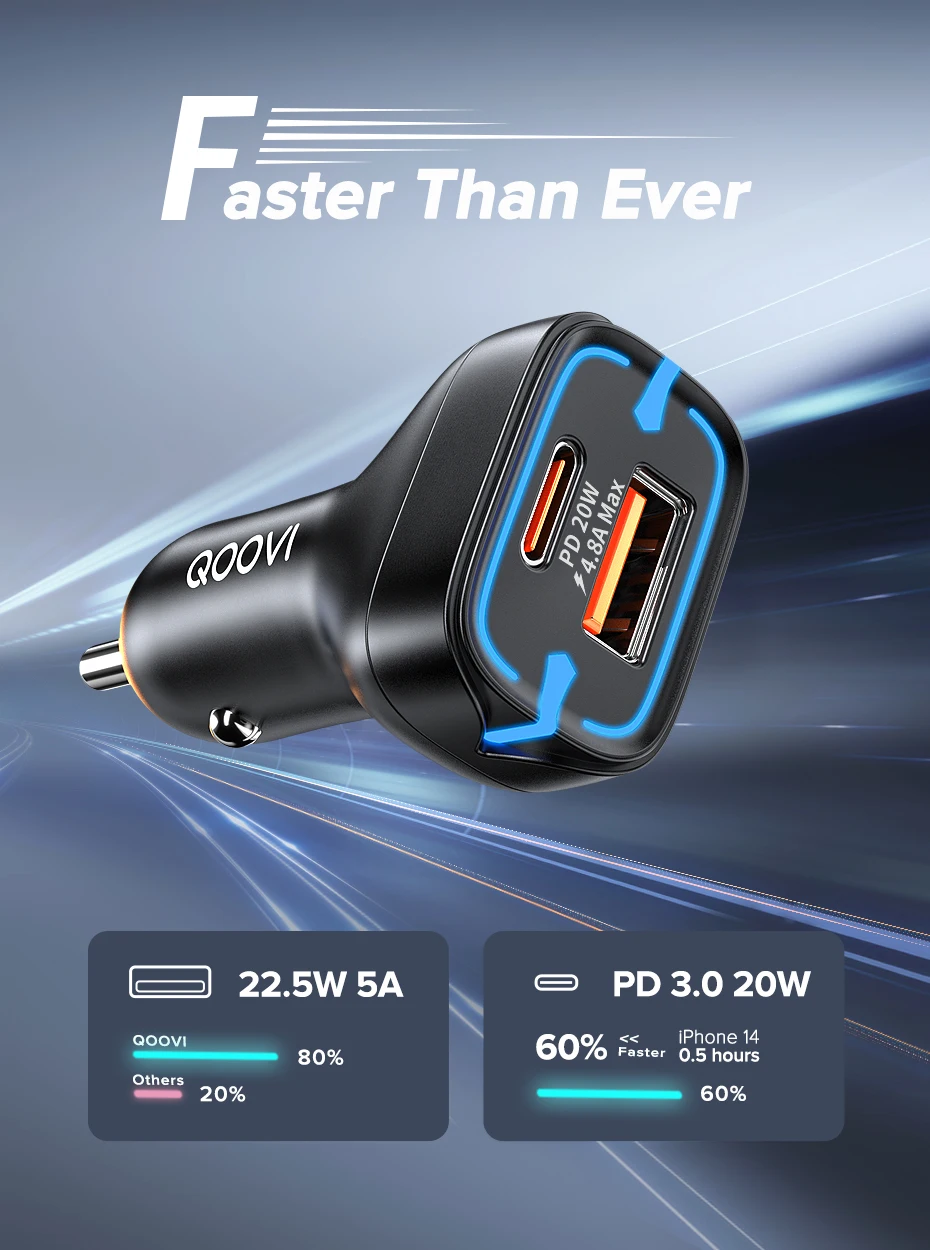 - Items: QOOVI PD+QC Car Charger