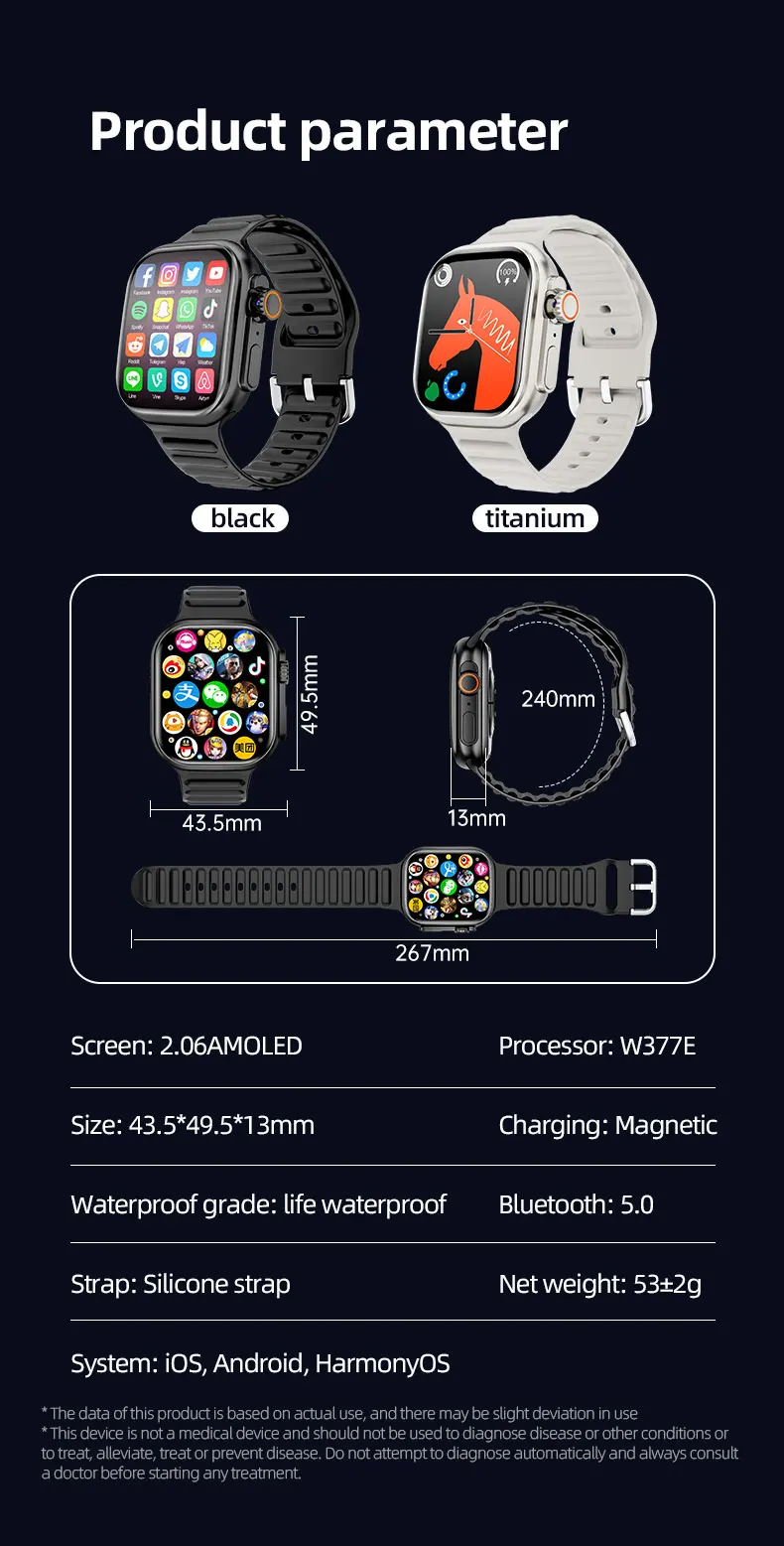 - Watch size: 49.4*43.5*13mm