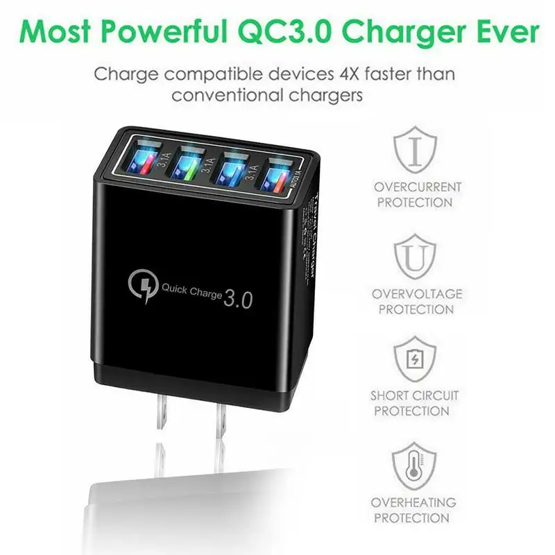 - Mobile Phone ChargerFeature 5: Quick Charge 3.0 + 4 USB