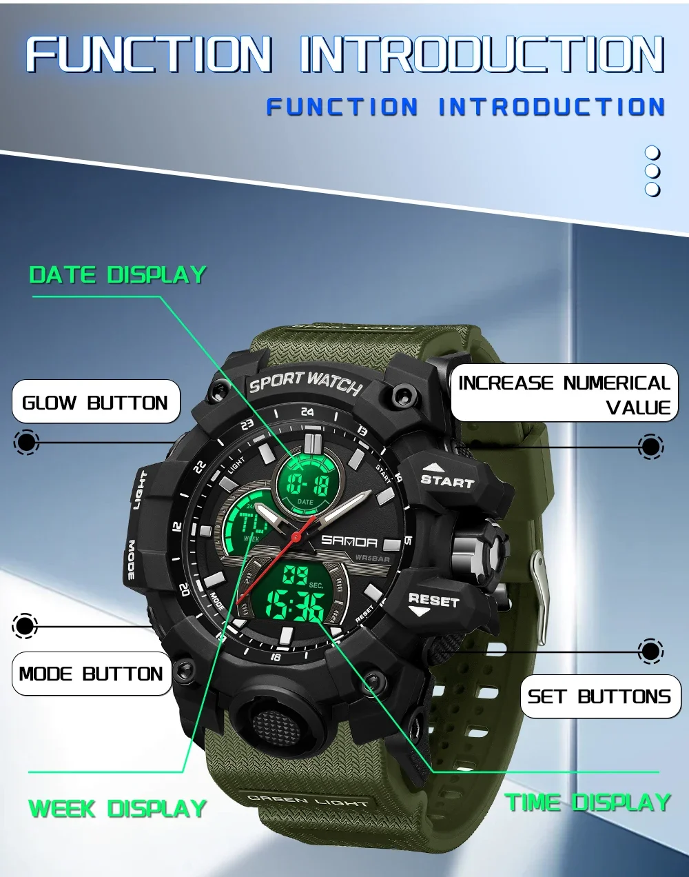 - Feature: Shock Resistant,LED display,Complete Calendar,DIVER,Water Resistant,swim