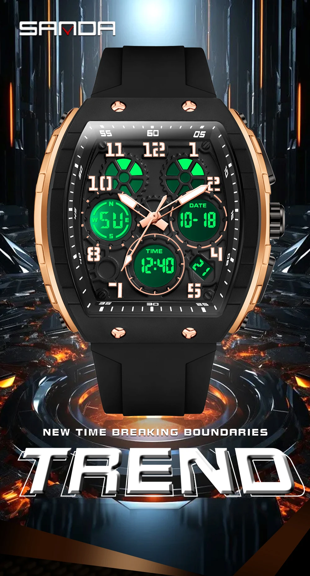 Sanda Brand’s New Electronic Watch Digital Multifunctional Fashion Trend Men’s Watch Silicone Waterproof Alarm Clock Men 6157