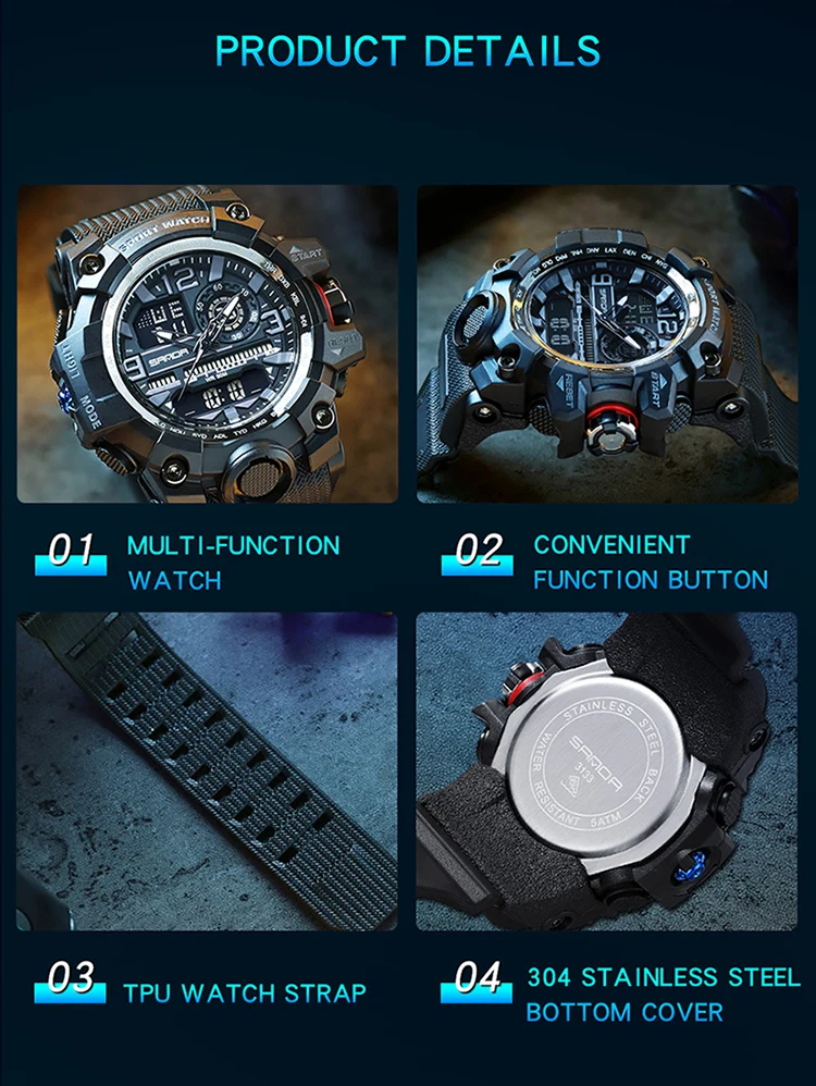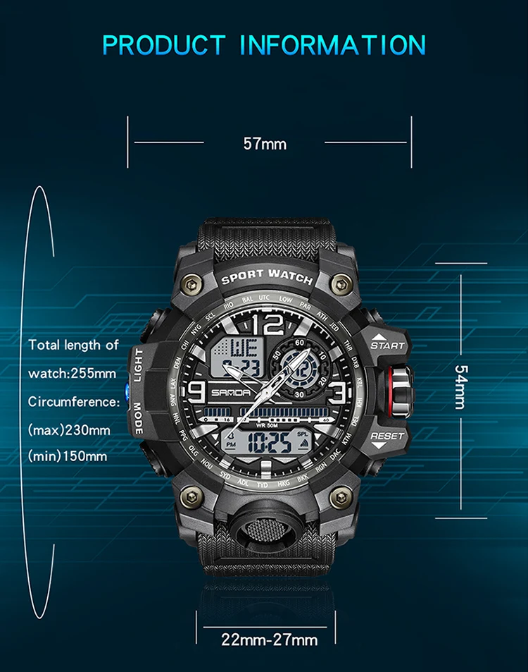 - Movement: Quartz,Dual Display,Digital