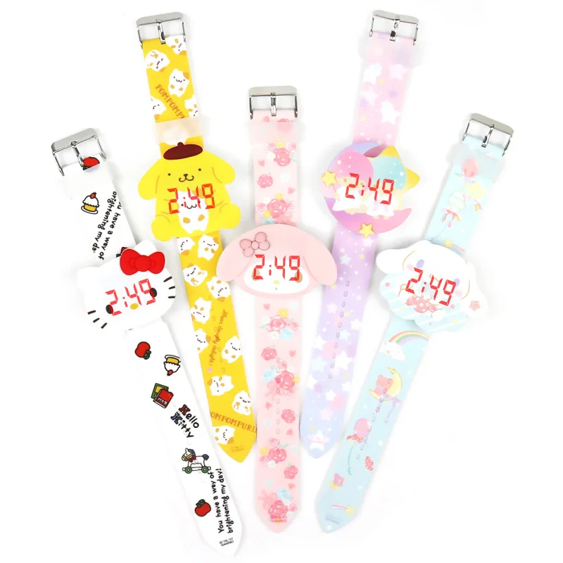 Sanrio Cartoon Pattern Hello Kitty Children Watches for Girls Kuromi Cartoon Silica Gel Kids Watch Watchband Quartz Clock Gift