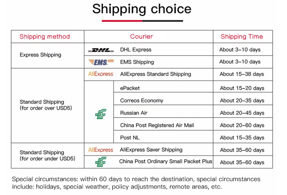 Aliexpress Standard Shipping:15-40 days