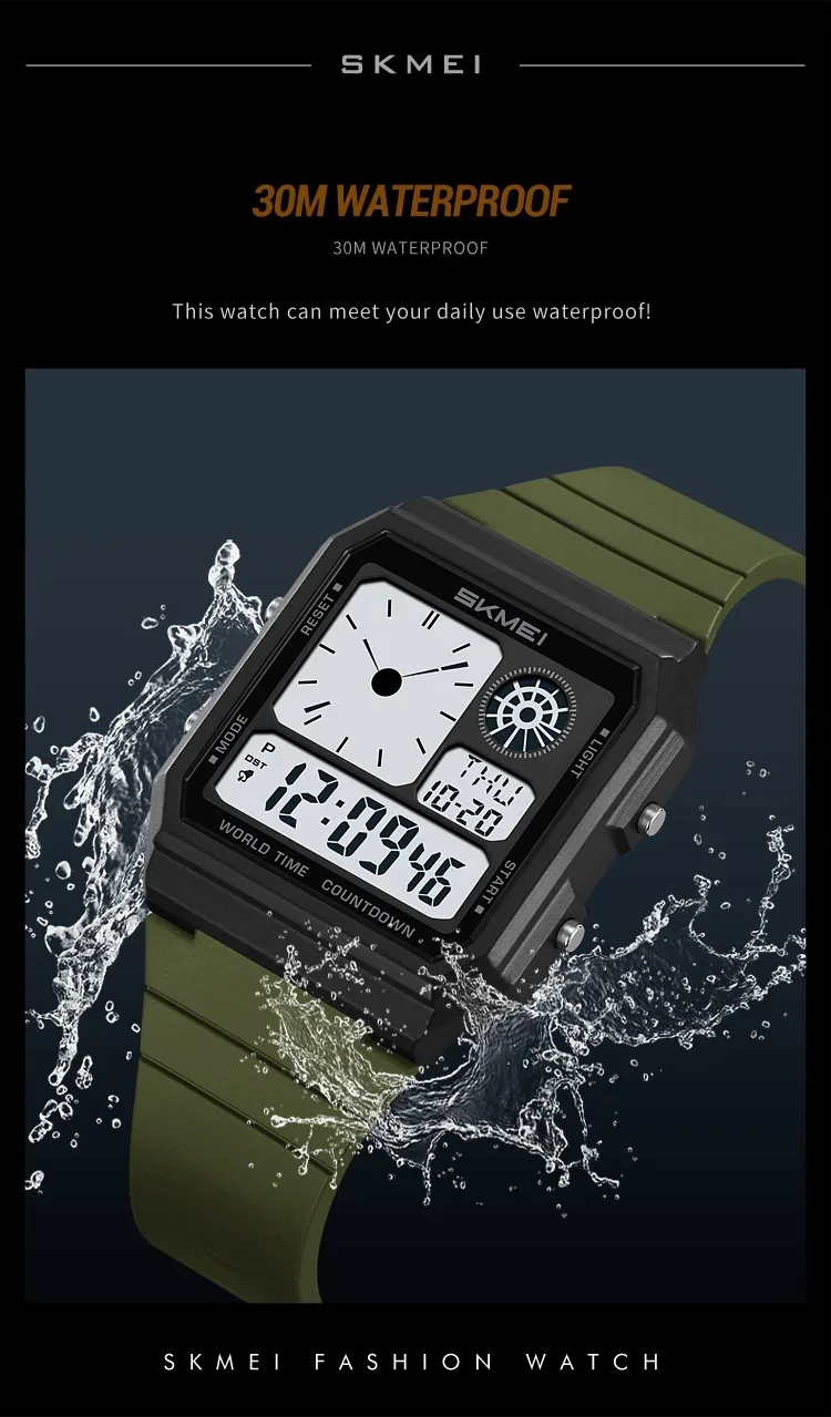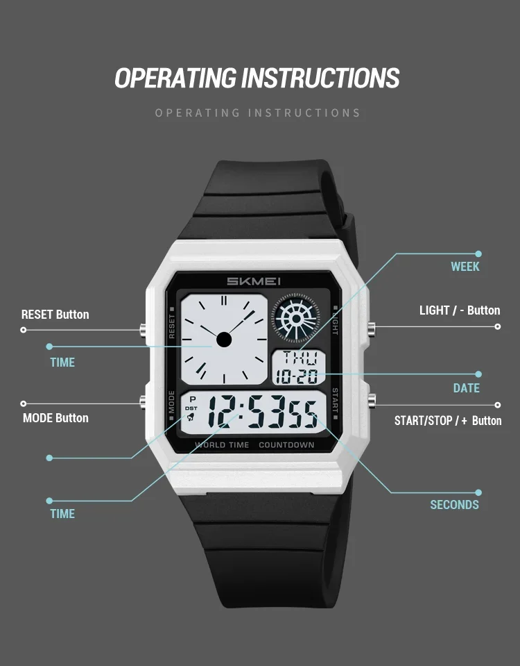 - Feature 3: Count down timer,Daylight Saving Time.,3Bar waterproof