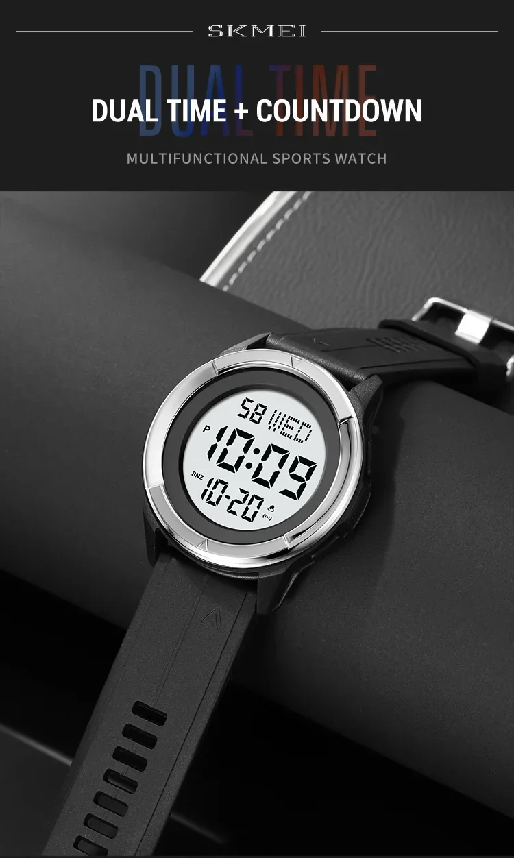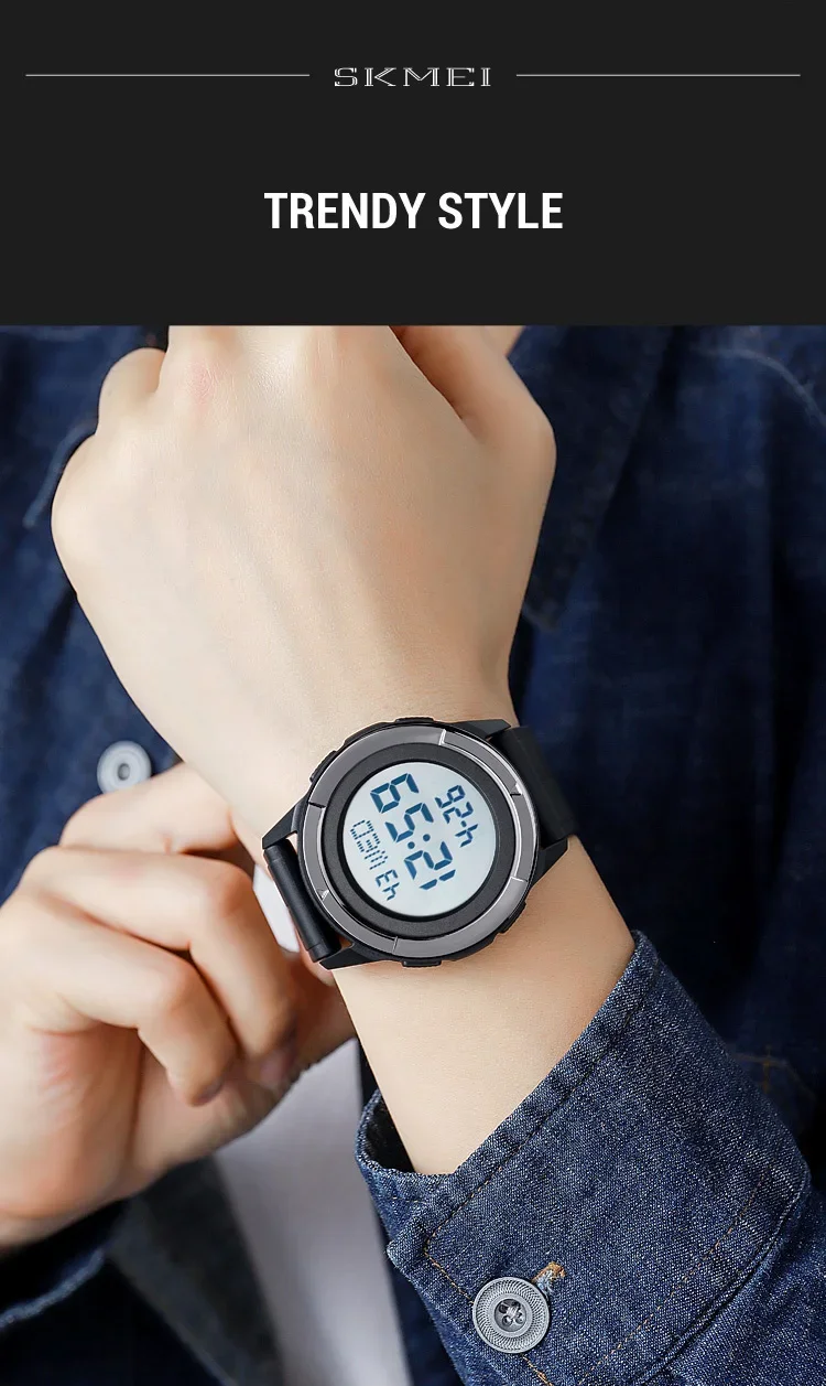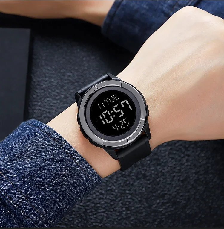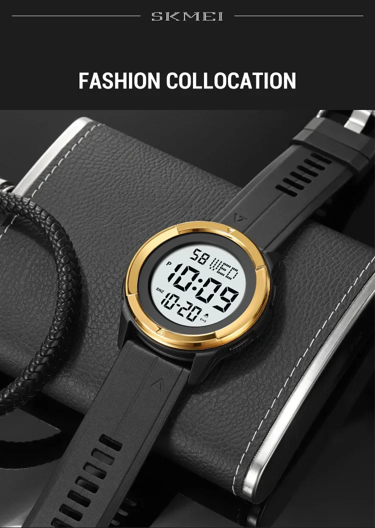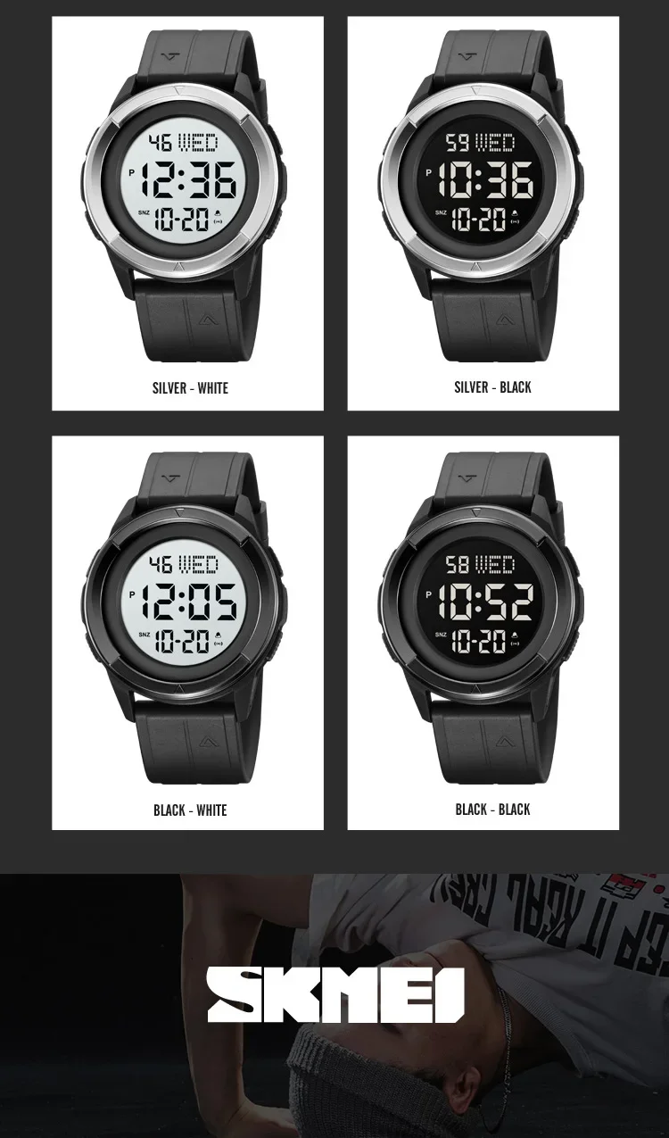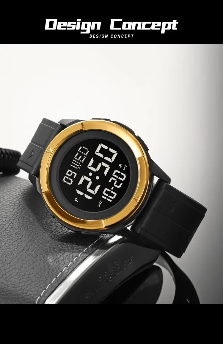 SKMEI LED light Display Electronic Sport Watches Mens Casual Chrono Countdown Digital 5bar Waterproof Wristwatch montre homme