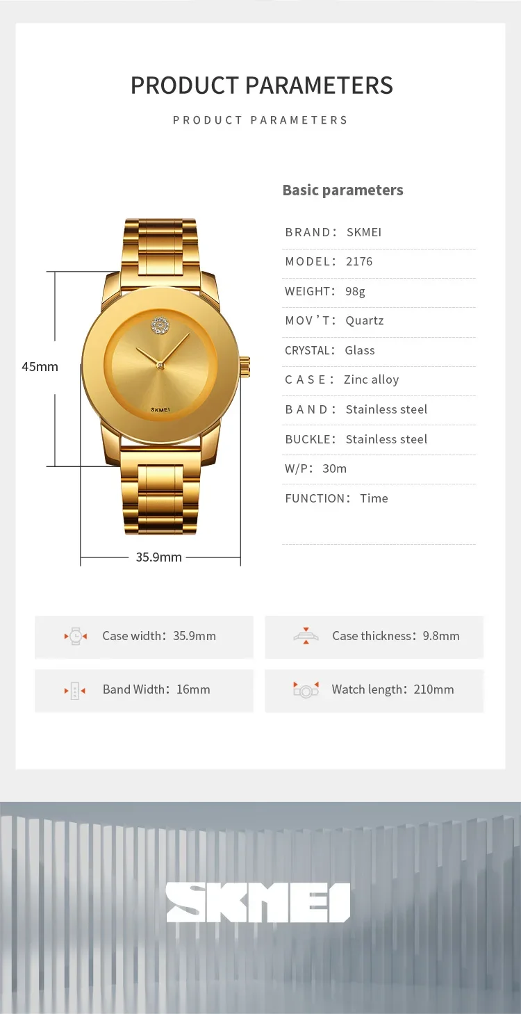 SKMEI Simple Quartz Watch Mens Luxury Stainless Steel Strap Male Wristwatches Waterproof Time Clcok reloj hombre