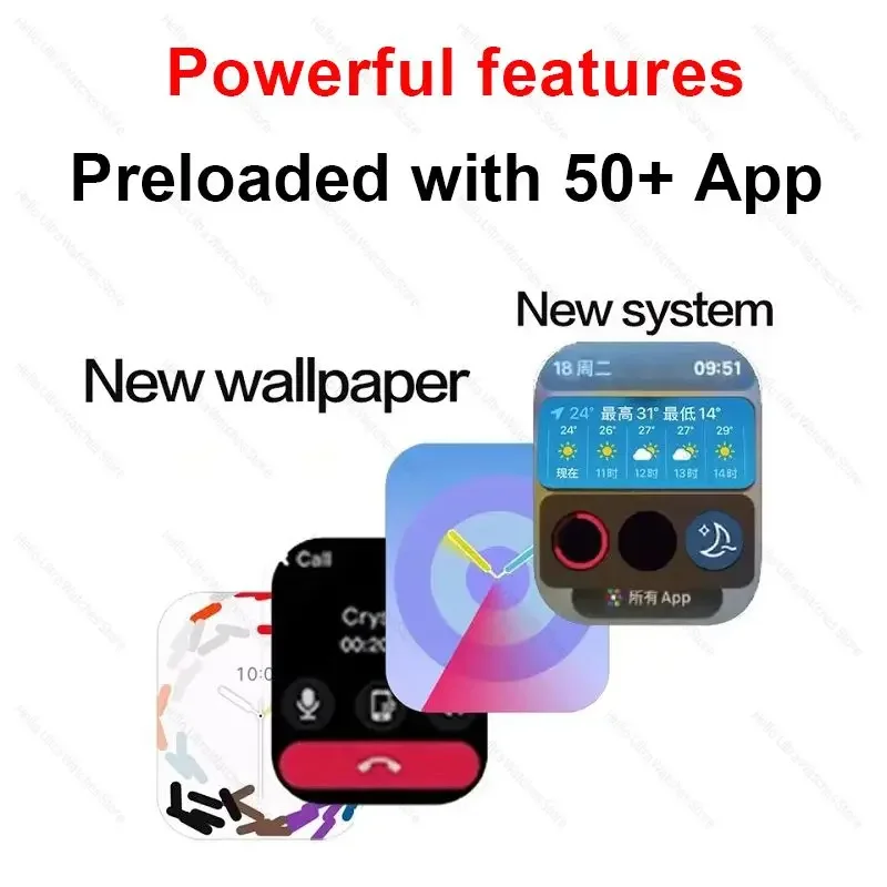 Shell: 49mm 1:1 Titanium alloy case with metal strap lock button and real screw on the back.(smartwatch)