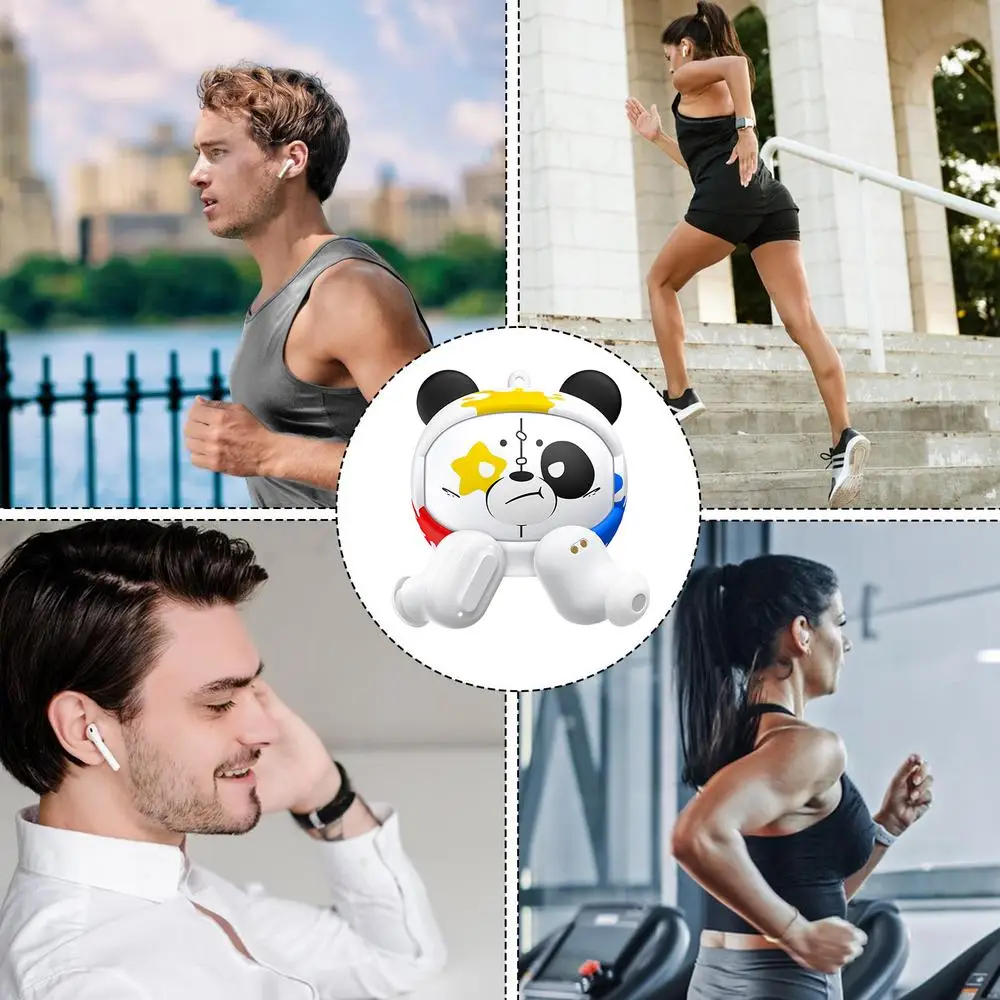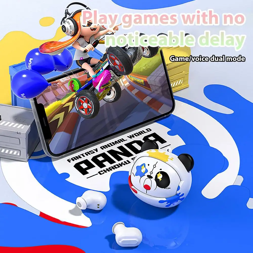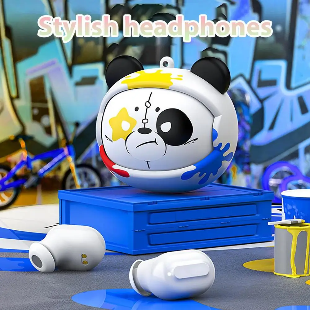 2.Coolness Amplifier: Make a bold audio statement with these wireless earbuds and their panda-themed charging case in bright colors. Express your unique taste and improve your cool look.