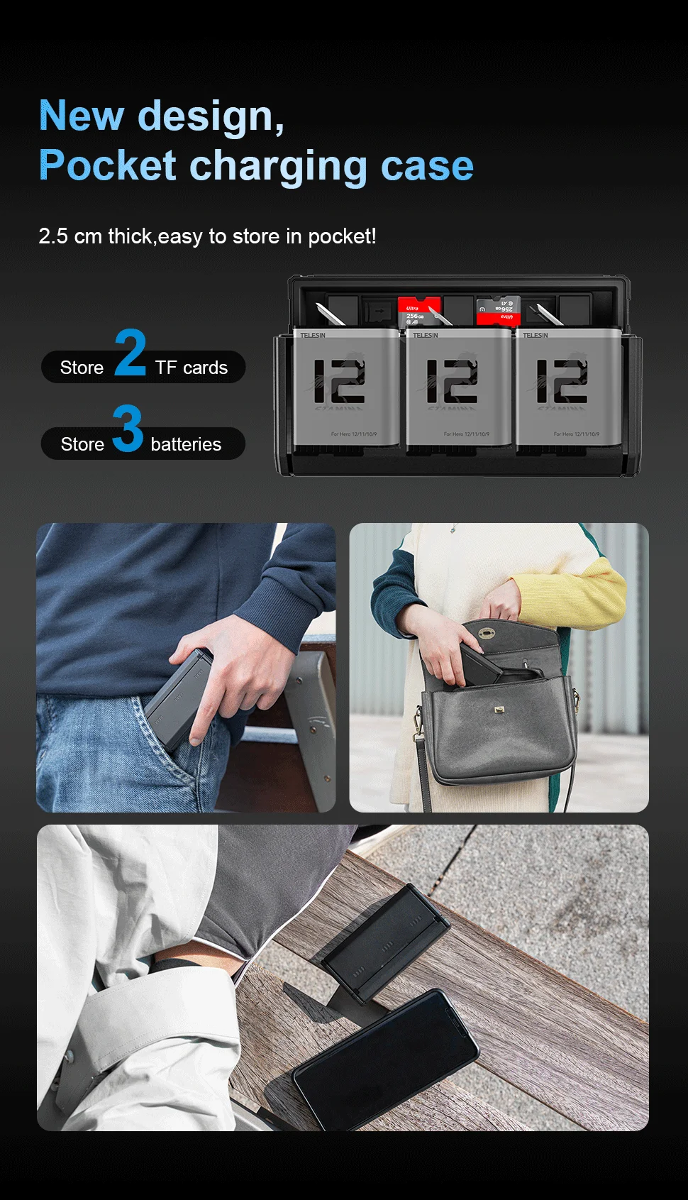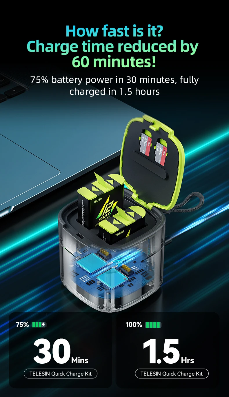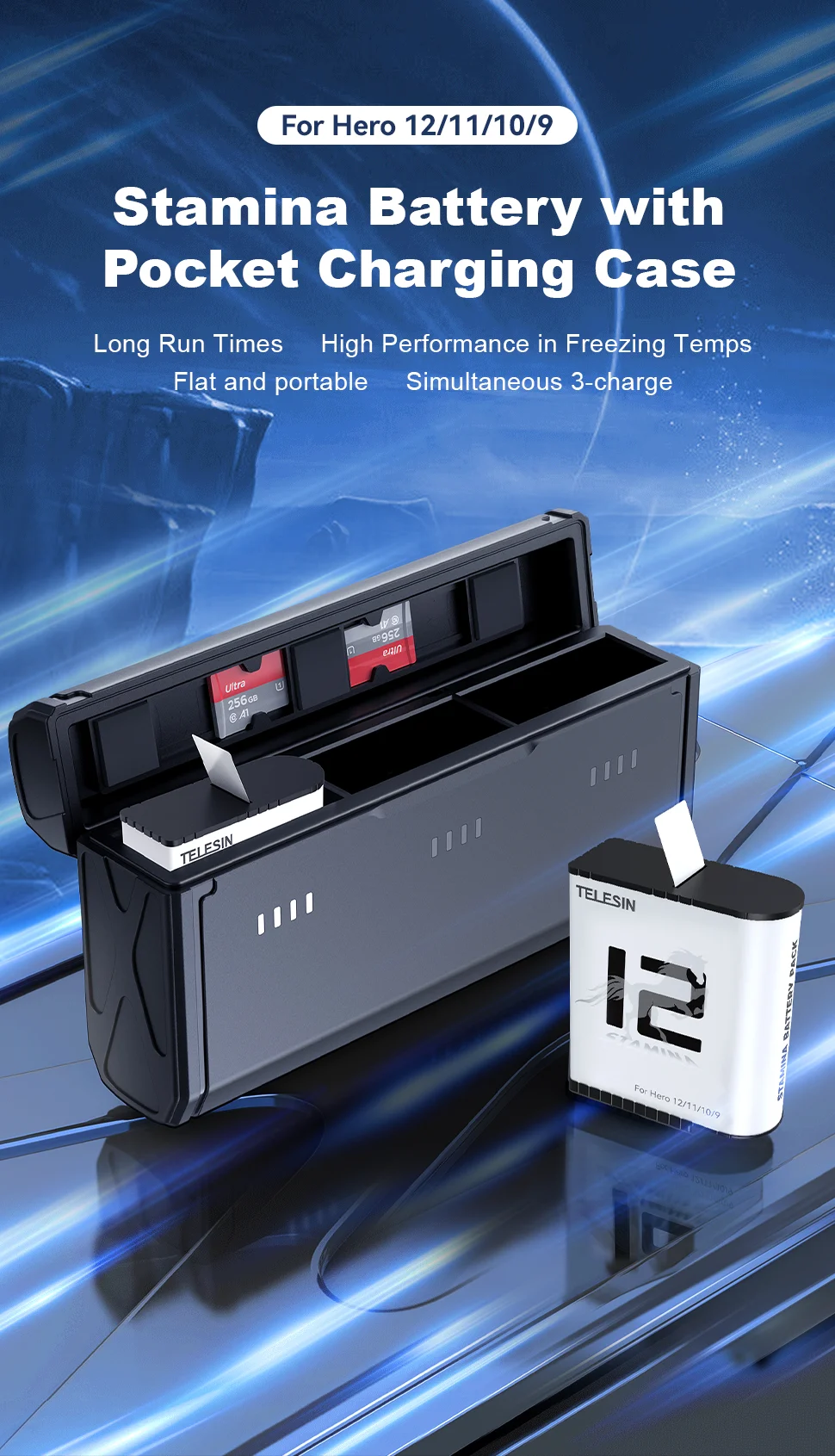 TELESIN Quick Charge Charging Case and Battery Set for GoPro 9/10/11