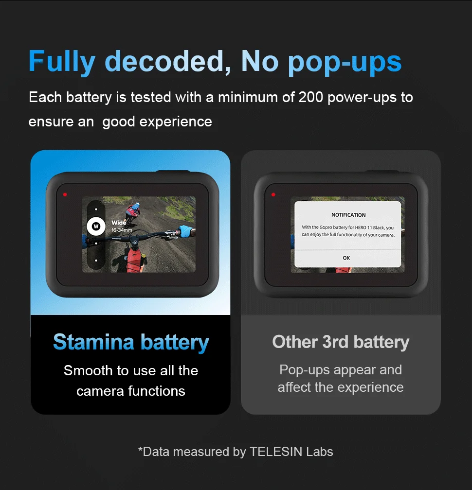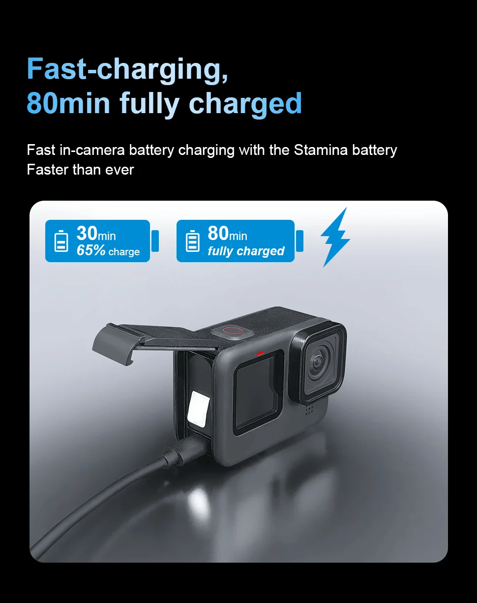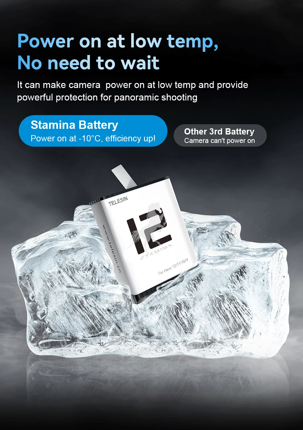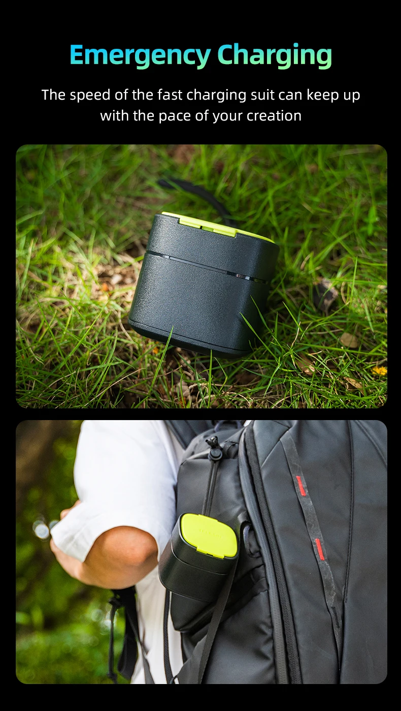 4. The charging box is compatible with GoPro original batteries, third-party batteries, and TELESIN fast-charging batteries. Still, only with TELESIN fast-charging batteries or stamina batteries, fast charging can be achieved.