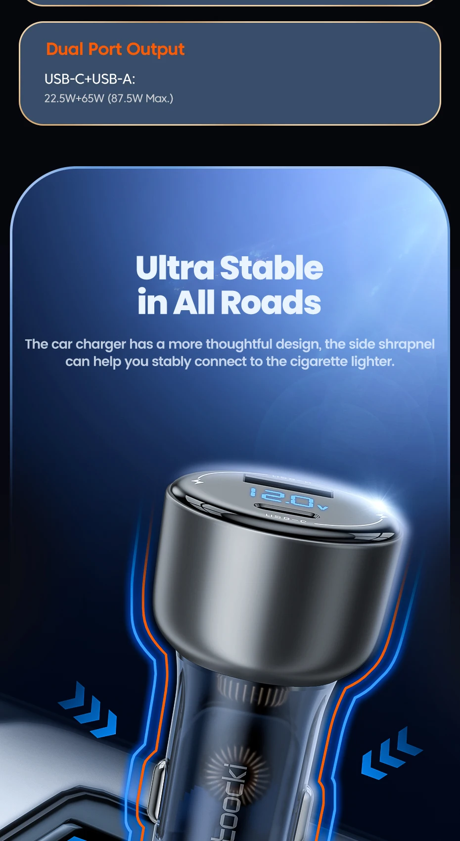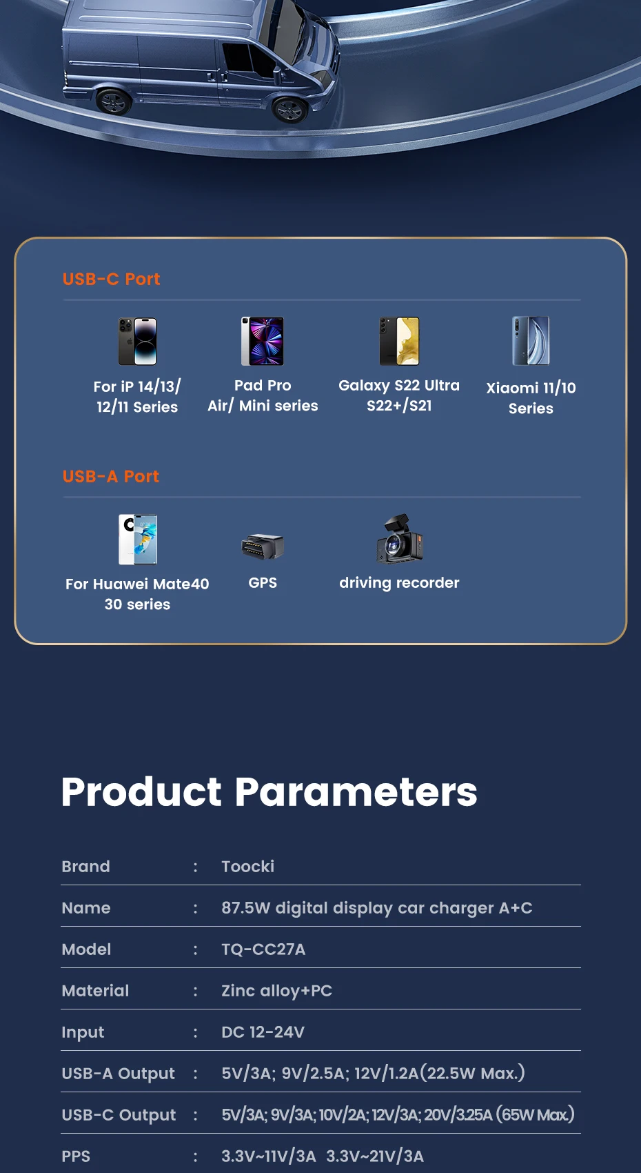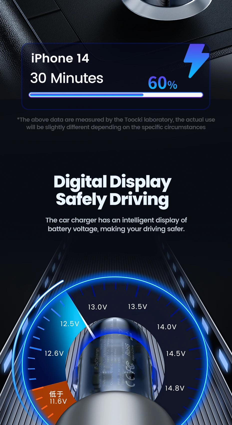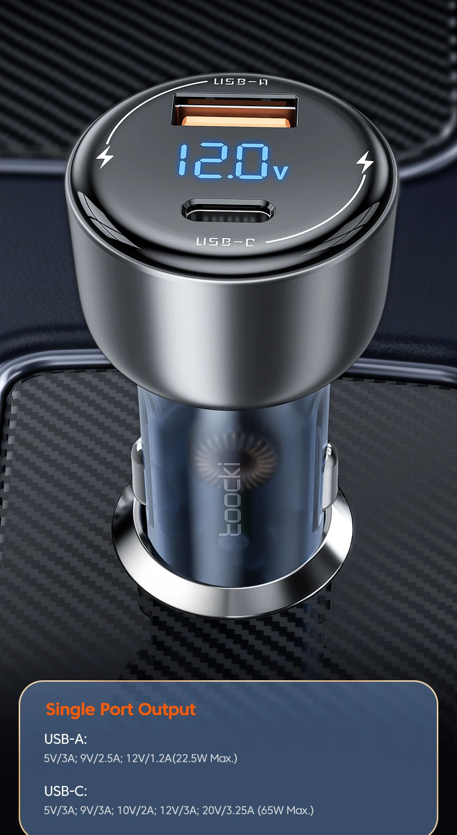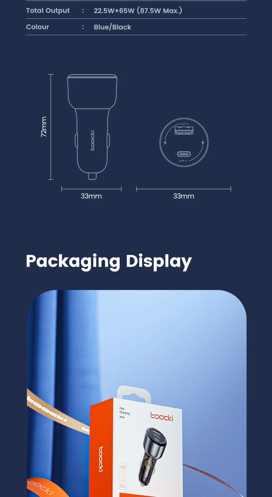 - Name: Toocki Digitial Display Car Charger 87.5W PPS 65W Fast Charging Type C Car Phone Charger QC4.0 PD3.0
