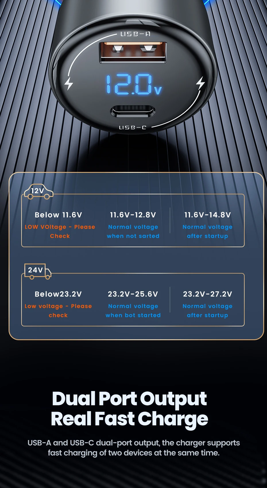 *USB-A Output :5V/3A; 9V/2.5A;12V/1.2A(22.5W Max.)