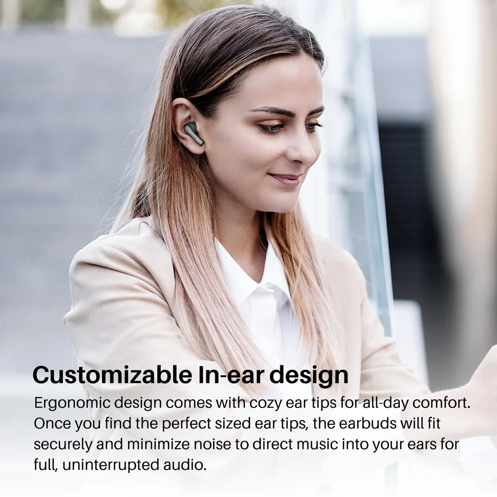 [Ultra Lightweight and Compatible for Small Ear] The surface and Angle of A2 earbuds in-ear part have been polished and refined repeatedly to achieve a balance between beauty and comfort and make it comfortable to wear. Likewise, a single earbud weighs only 3.7g, making it as light as a feather and discreet in the ear. Ergonomic design provides a comfortable and secure fit that doesn’t protrude from your ears especially for sports, workout, gym.