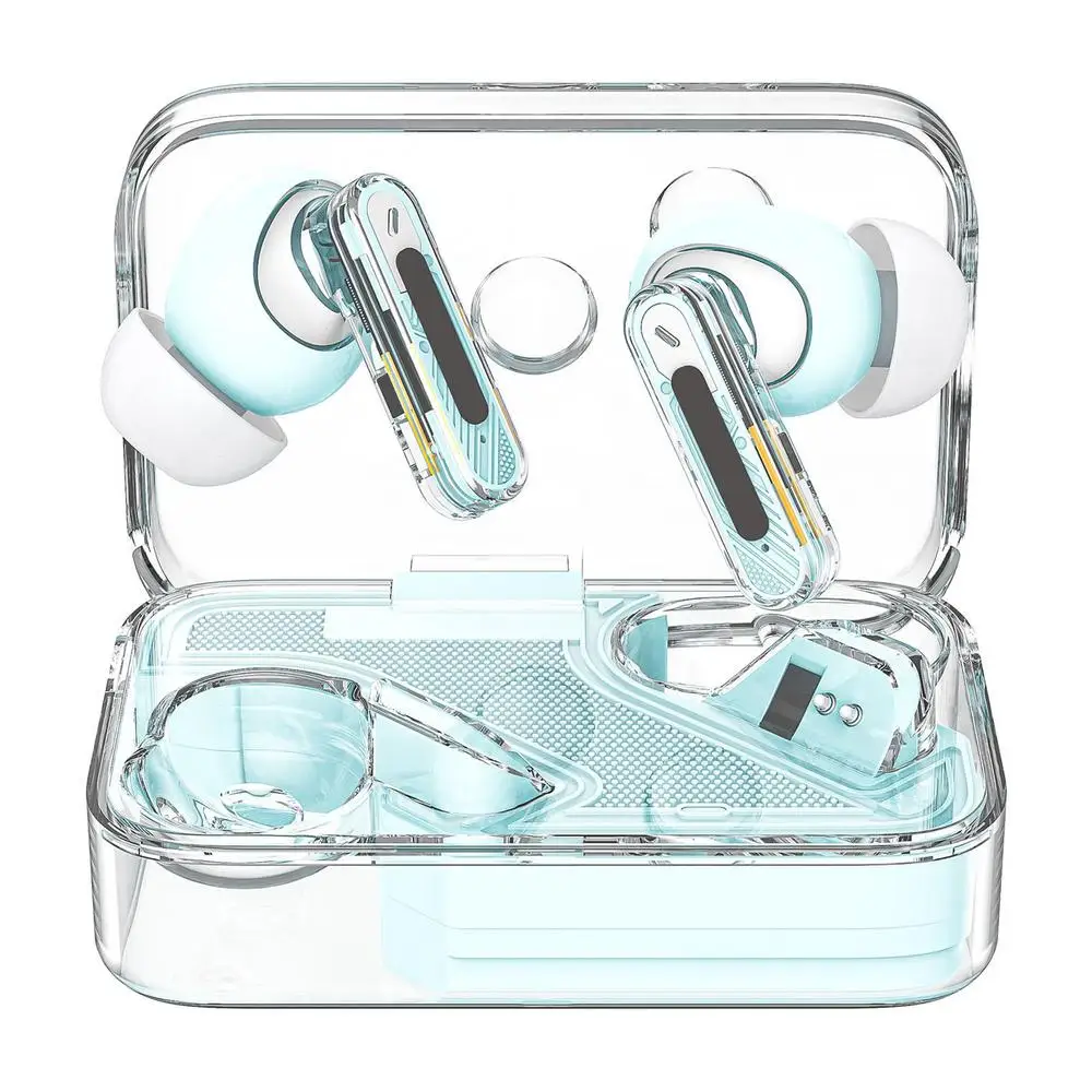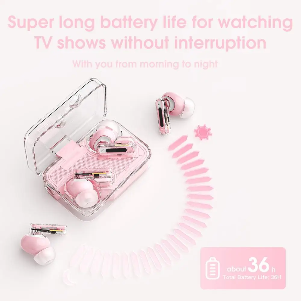 1.Enhanced Audio Experience: Elevate your music experience with these True Wireless Earbuds that combine modern technology with a stylish transparent design to give you unmatched audio quality. Indulge in crystal-clear sound and show off a sense of technology with these revolutionary earbuds.