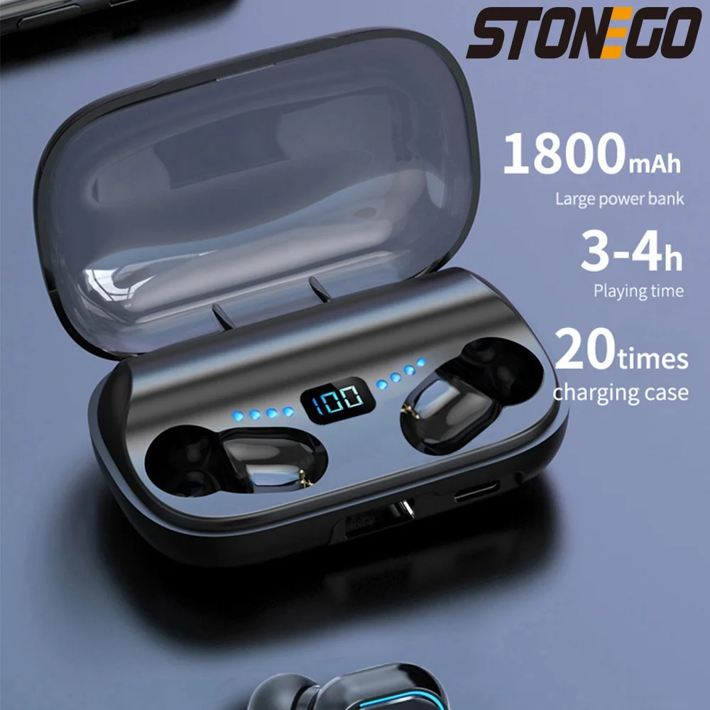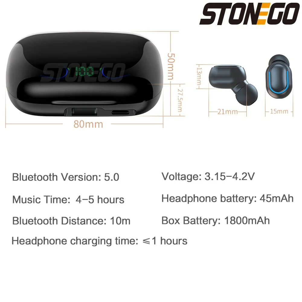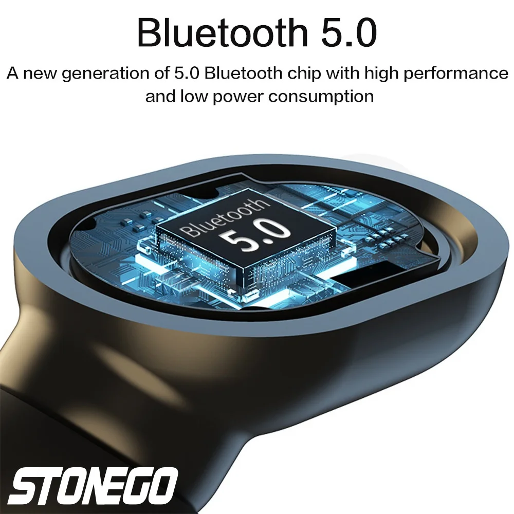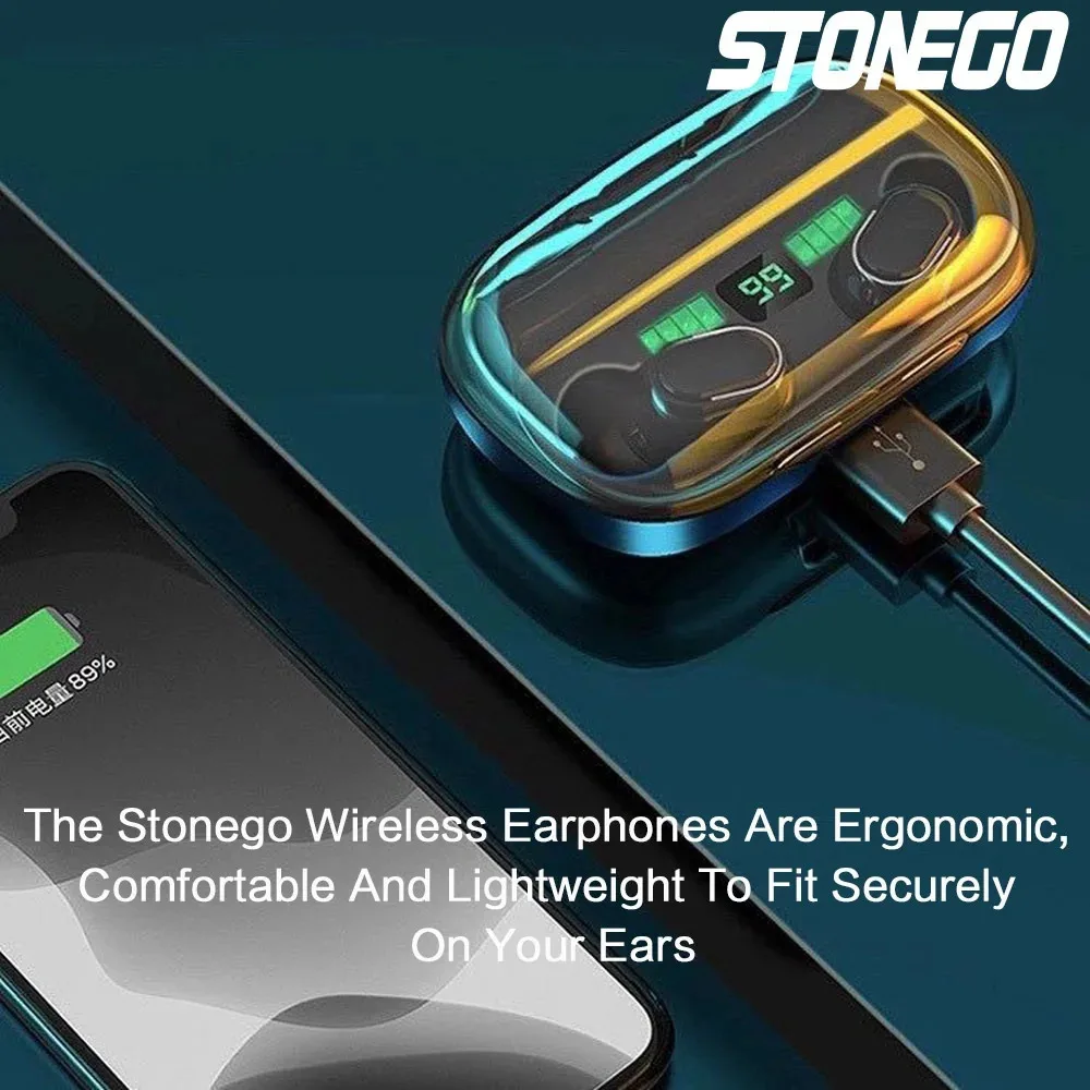 2.COMFORTABLE AND IPX5 WATERPROOF: The stonego wireless earphones are ergonomic, comfortable and lightweight to fit securely on your ears. These in-ear headphones are made of abrasion-resistant material and are waterproof and sweat-resistant. More suitable for fitness and running enthusiasts. It has a strict process design, which can effectively prevent rain and sweat from entering.