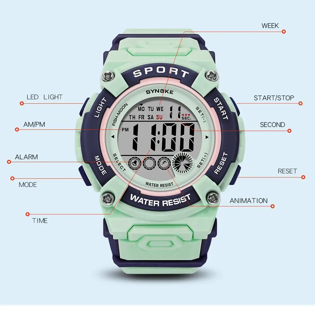 Selling Point Features: Children’s Student Electronic Watch Waterproof Sports Multi functional Boys and Girls Watch New Equipment for School Start