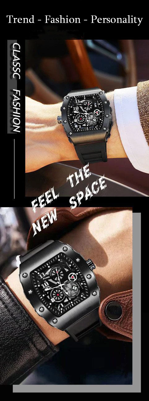 UTHAI Men’s Watch Sports Fashion Trend Fully Automatic Quartz Wristwatch Hollow Waterproof Black Warrior Male Clock Watches