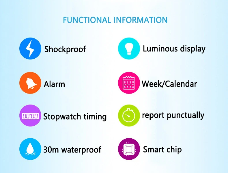 - Feature: STOP WATCH,Shock Resistant,LED display,Repeater,Luminous,Complete Calendar,Water Resistant,Alarm,swim,Week Display