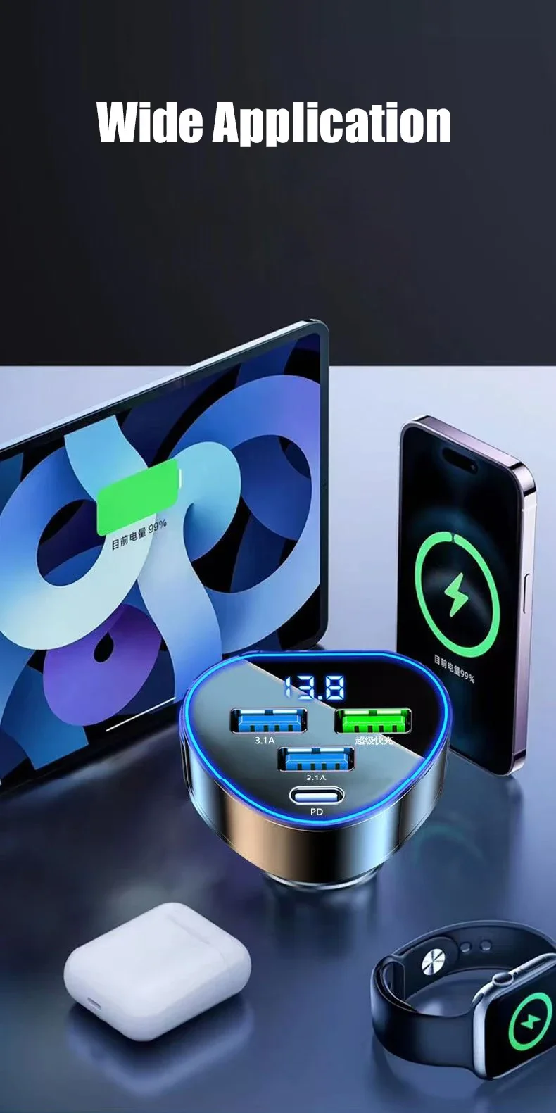 - Applied Fast Charge Protocols: VIVO Super FlashCharge,Samsung Adaptive Fast Charge,OPPO VOOC,Huawei FCP,USB PD,other,BC1.2,Qualcomm Quick Charge,Huawei Quick Charge