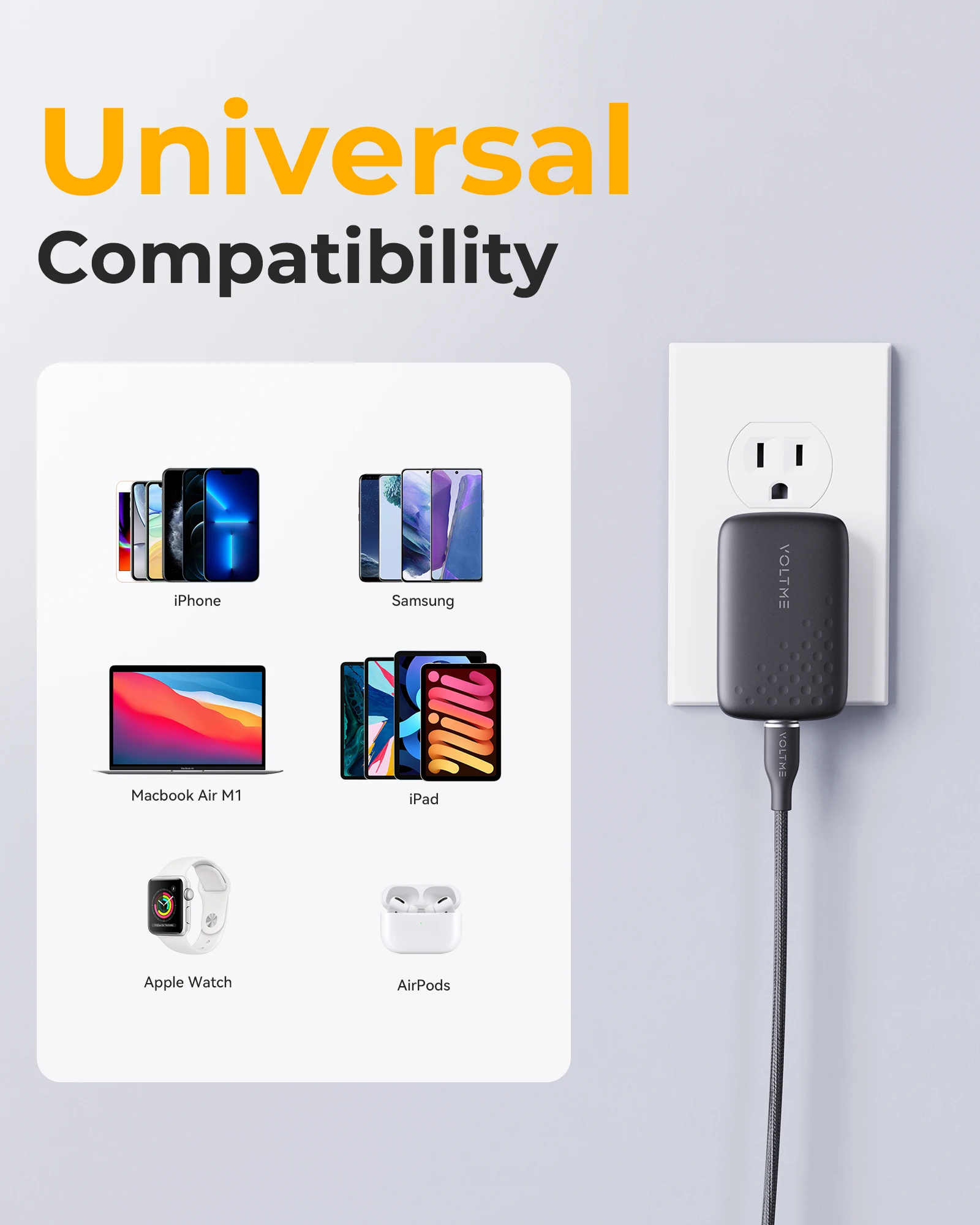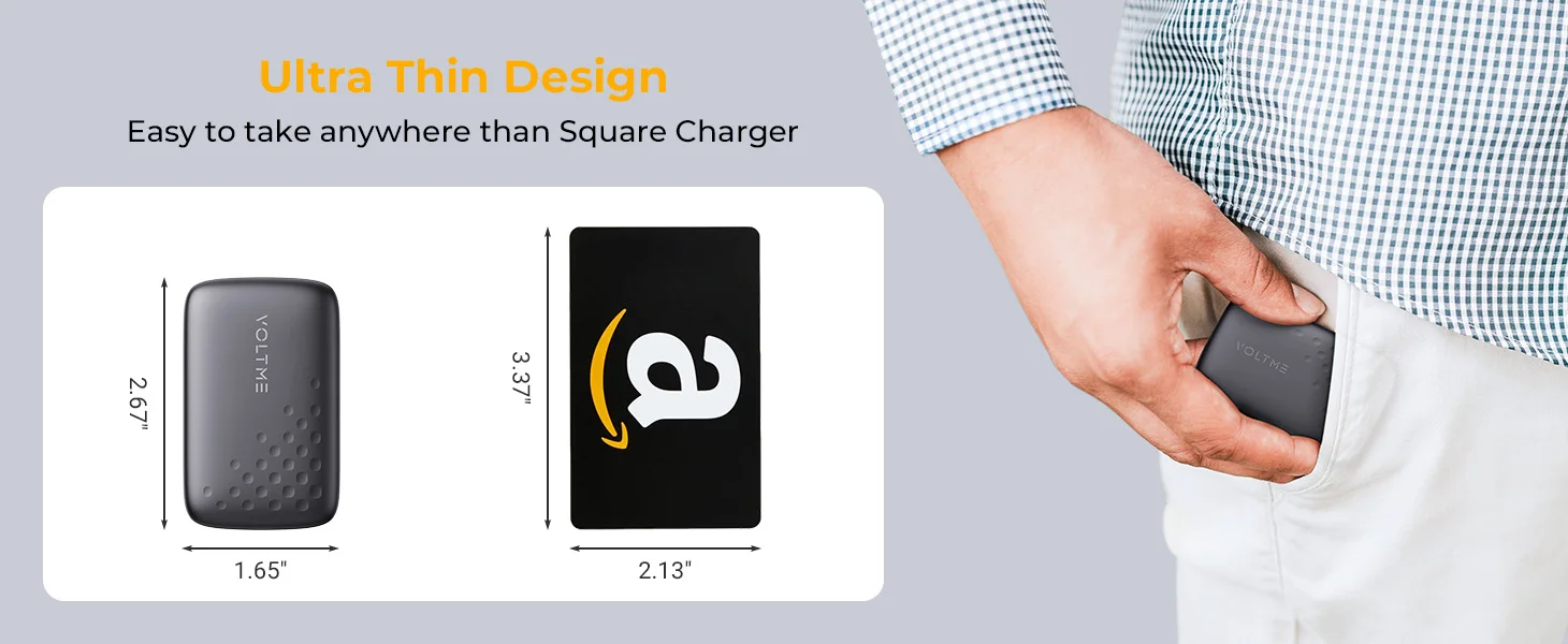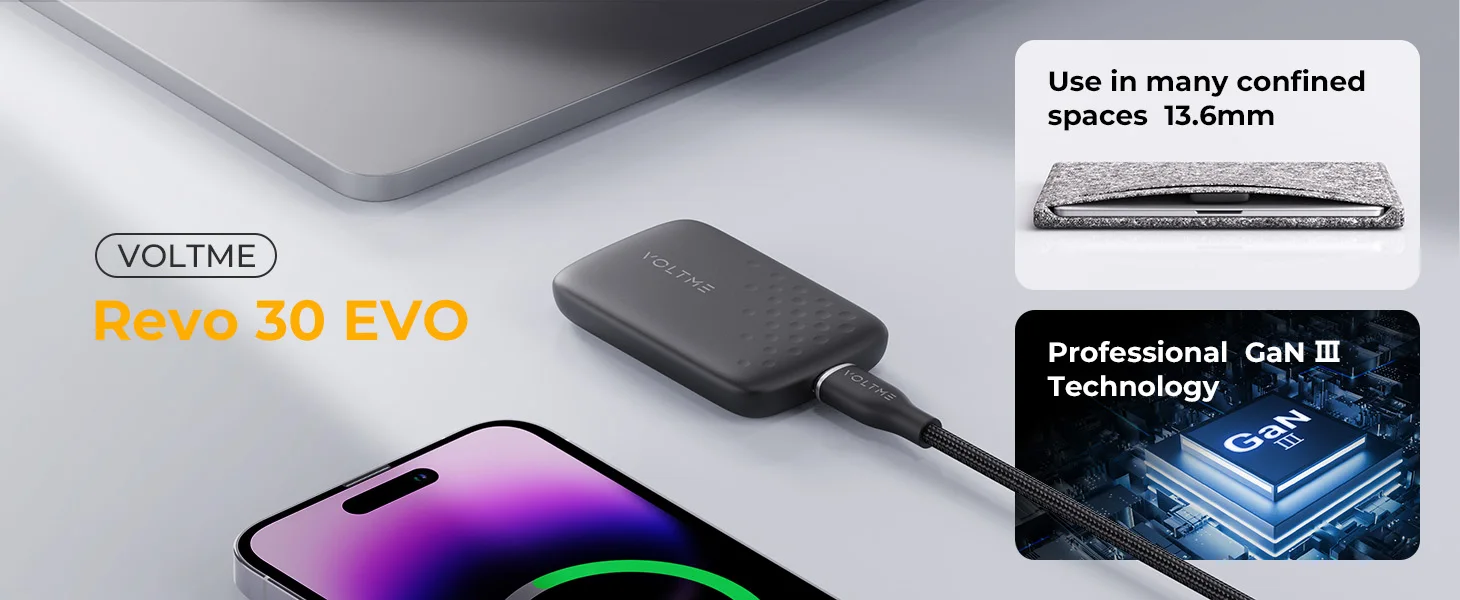 VOLTME’s V-Dynamic 3.0 technology charges phones and tablets at their fastest possible speed, and can quick charge a iphone 14 pro to 50% in 30 minutes