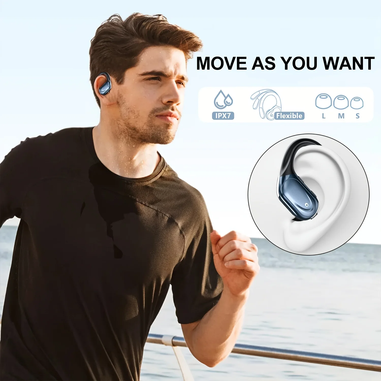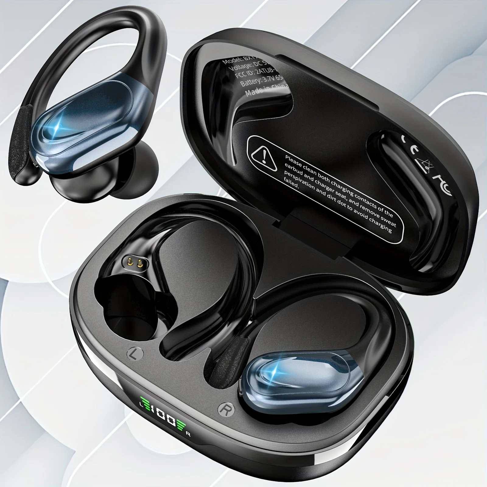 Wireless Earbuds With Earhooks, Waterproof Sports Headphones HiFi Stereo Earphones With Mic ENC Noise Cancelling Headsets Deep B