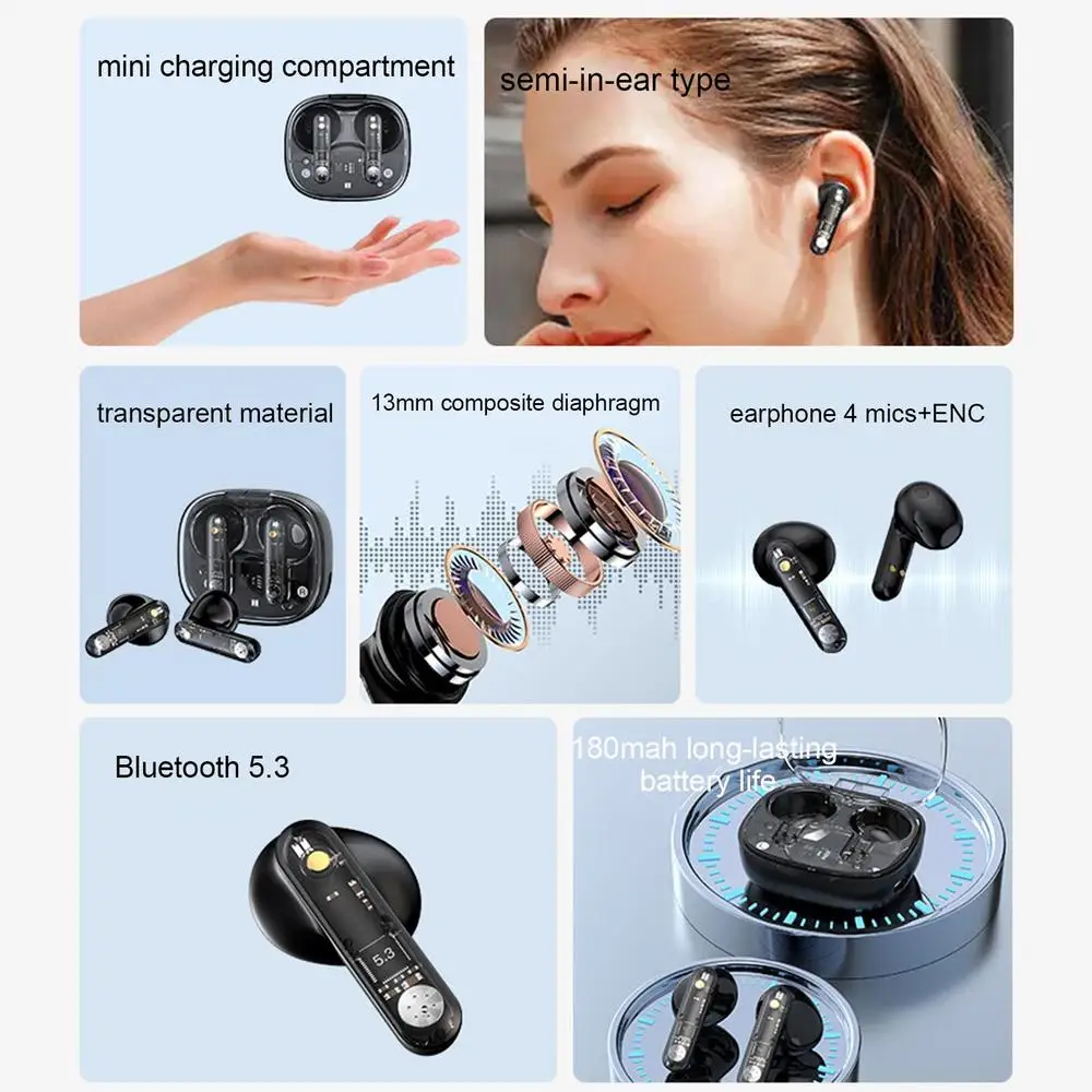 1.Call Noise Reduction: With a ti-tanium dome composite film dynamic speaker, this wireless headset with microphone delivers HiFi stereo sound and powerful bass. Enjoy crystal clear calls with noise reduction technology.