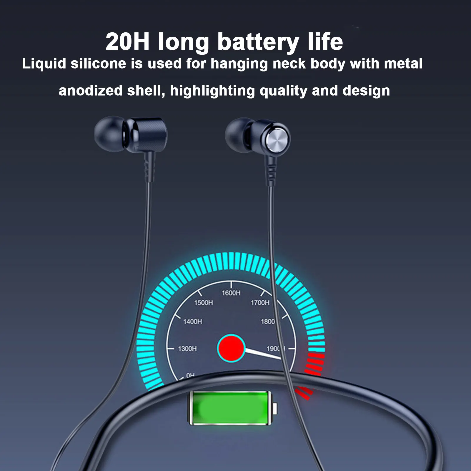 5、【Preferred Material】Liquid silicone, bluetooths headset for hanging neck body, with metal anodized shell, highlighting the sense of quality and design