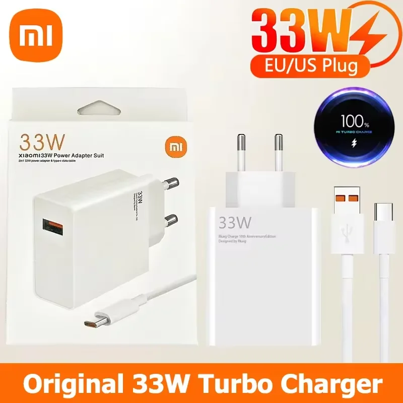 Xiaomi Original 33W Charger Adapter Turbo Fast Charge Usb Type-C Cable for Xiaomi Poco X5 X4 M5S X3 Pro Redmi Note 12 13 12R 13R