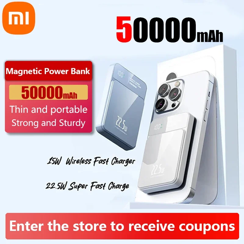 Xiaomi 50000mAh power bank Magsafe wireless magnetic power bank fast charging portable suitable for iPhone Xiaomi Samsung Huawei
