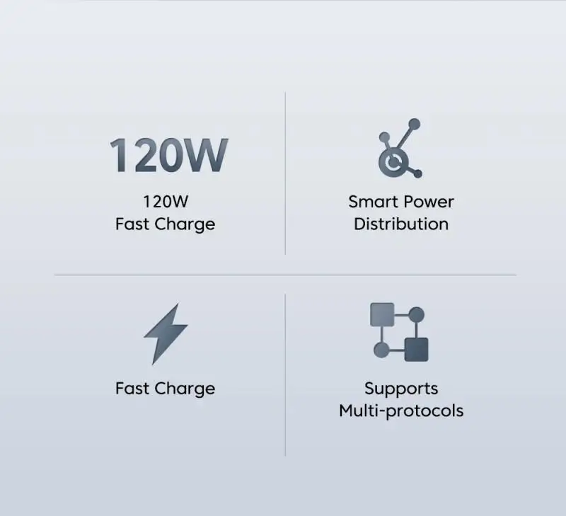 4. Intelligently divides a total of 120W charging power provides the optimal charging current for all connected devices