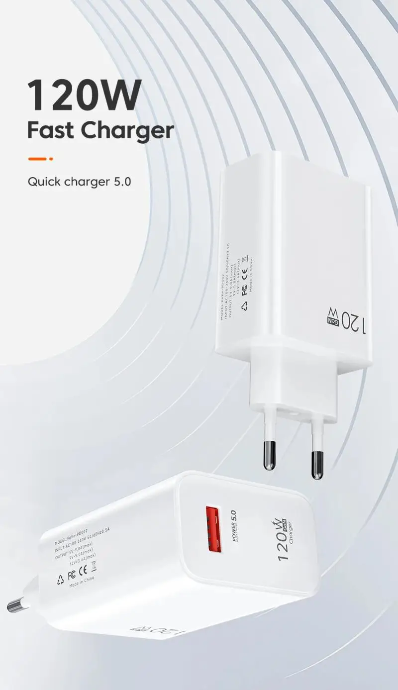 2. 120W high power quick charge, higher power,smaller volume and lower temperature rise