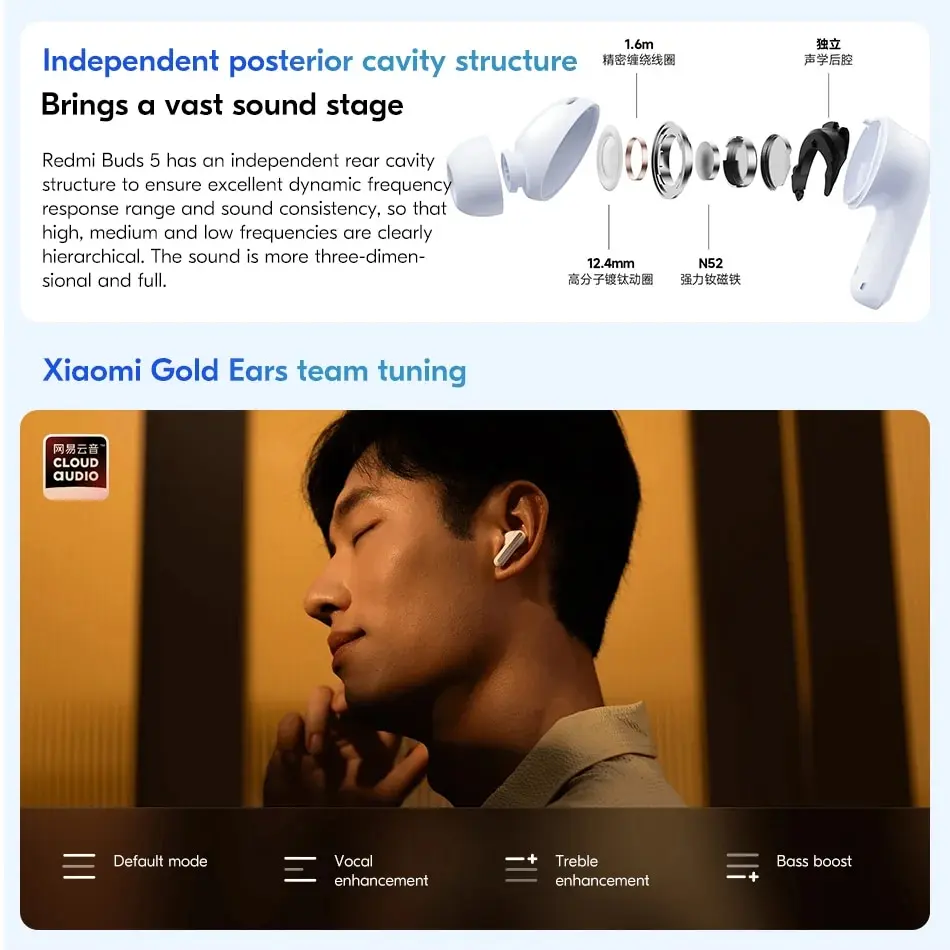 Xiaomi Redmi Buds 5 Earphone 46dB Active Noise Cancellation 54mAh Earbuds 40H Battery Life BT5.3 High-fidelity Sound Quality
