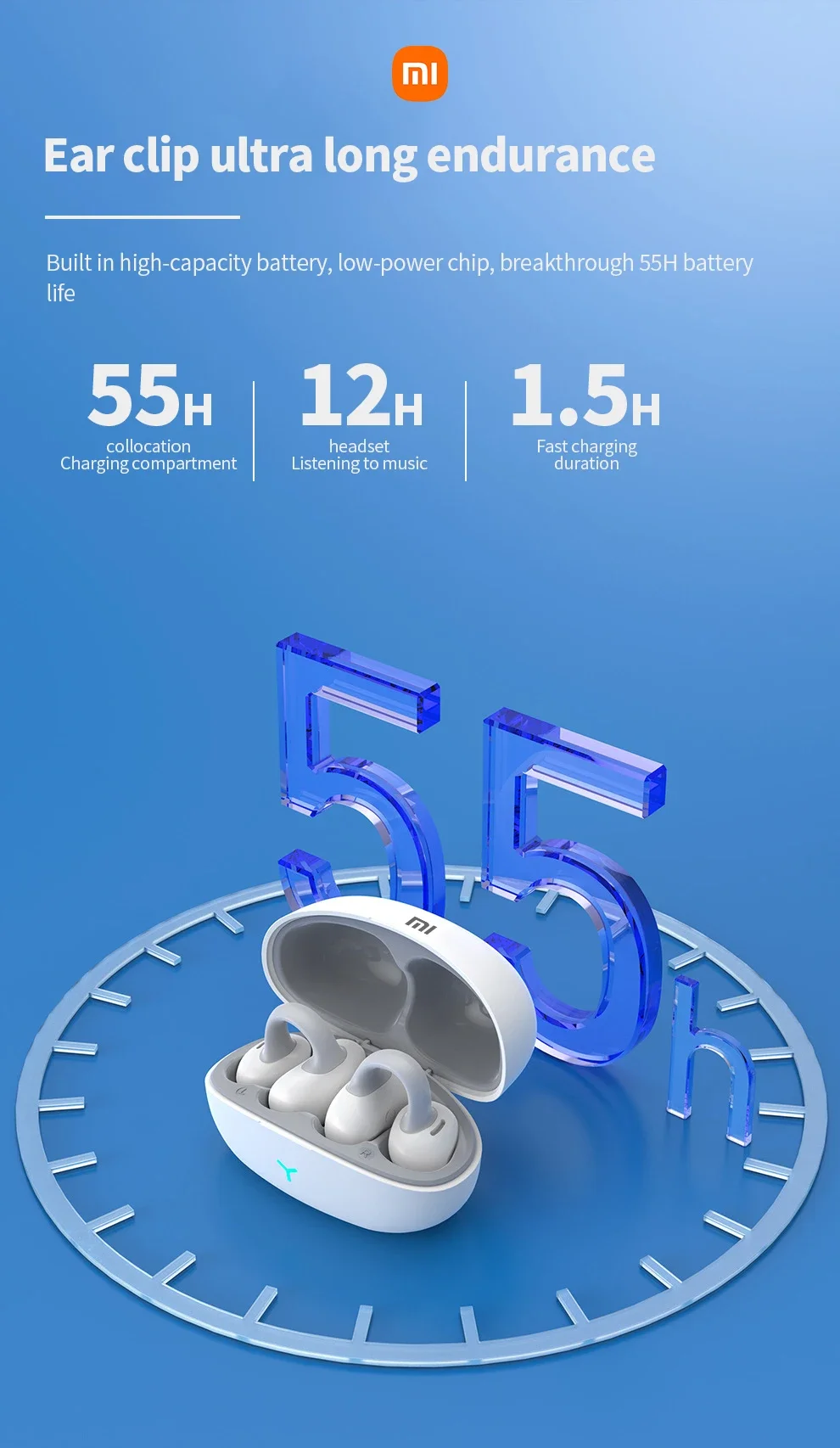 XIAOMI wireless earbuds HM20 Ear Clip Headset ENC Bluetooth5.3 Headphone Noise Cancelling Earphone With Mic For Android iOS