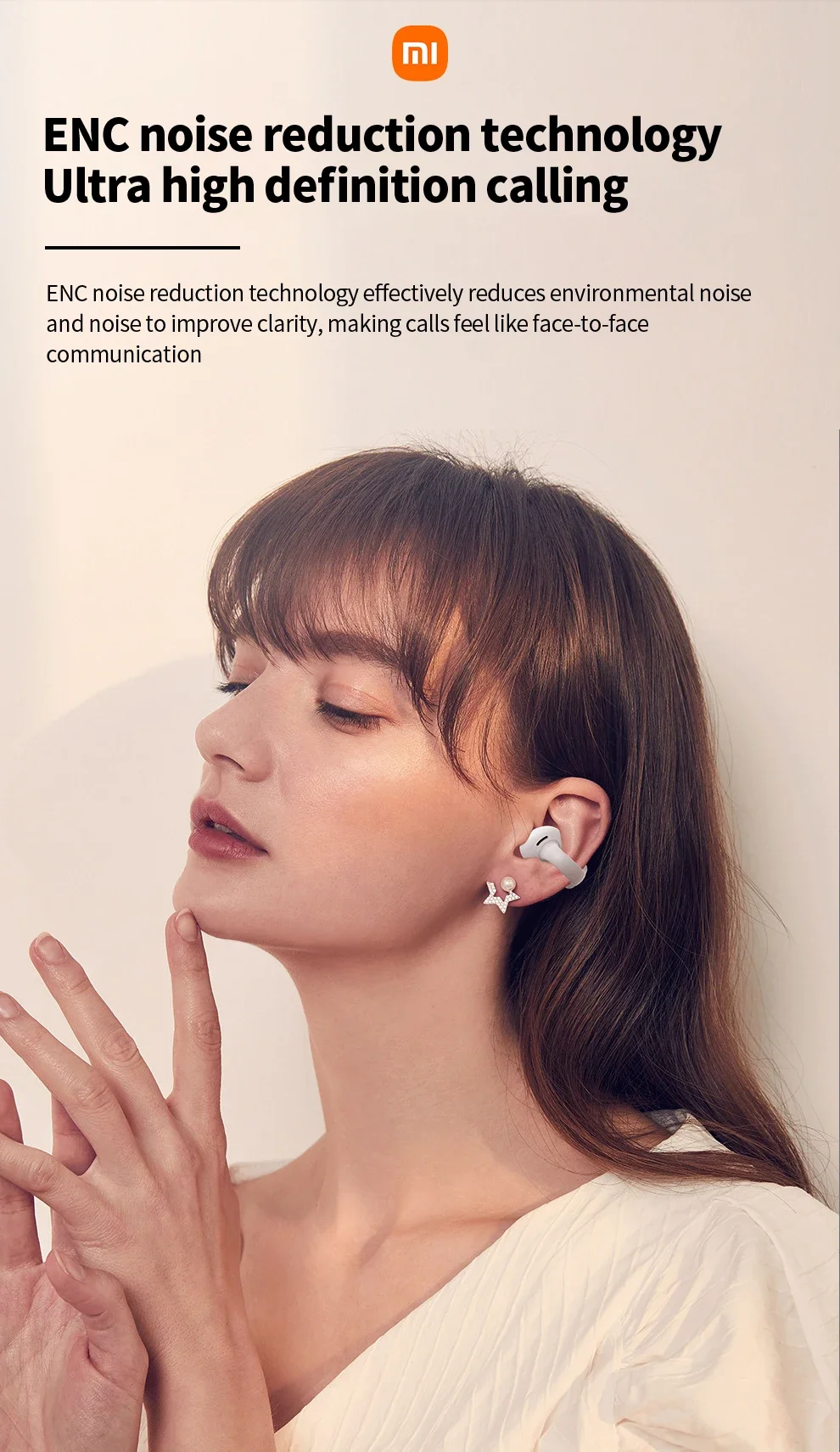 XIAOMI HM20 New Ear Clip Headset ENC Open Ear Wireless Bluetooth5.3 Headphone Noise Cancelling Earphone With Mic For Android iOS Earbuds With Charging Case For Smartphone
